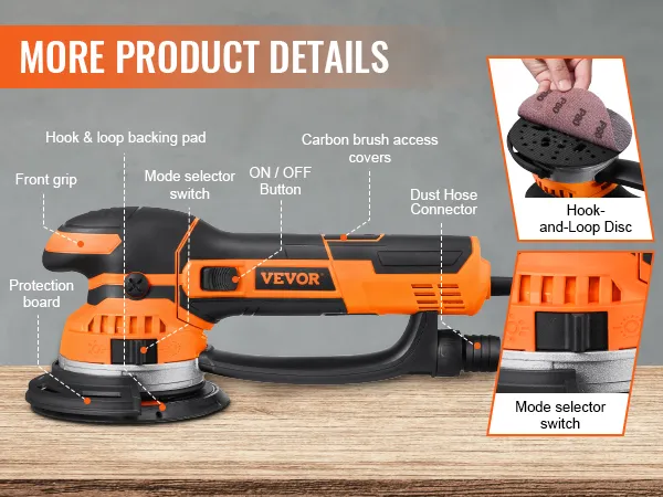 Deze 6-inch handschuurmachine voor houtbewerking heeft meerdere handige functies en zorgt voor een efficiënte en handige schuurervaring. Het is geschikt voor diverse ondergronden zoals hout, metaal, muren, autoplamuur en verf en helpt u bij het bereiken van ideale schuurresultaten op diverse materialen.