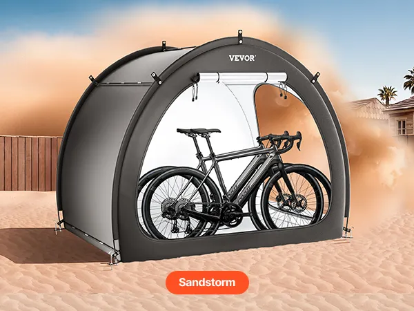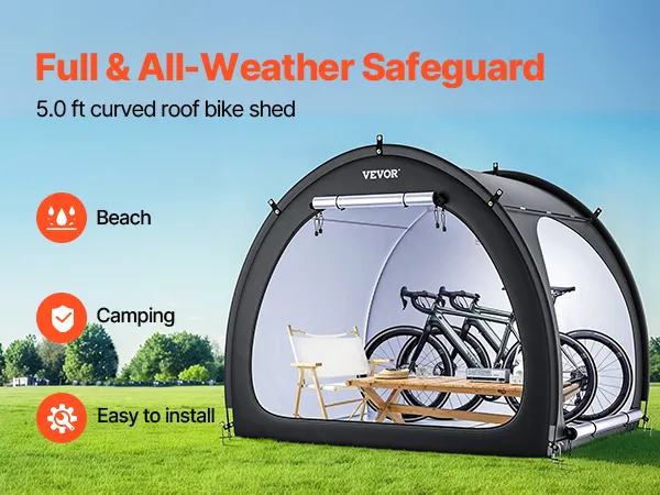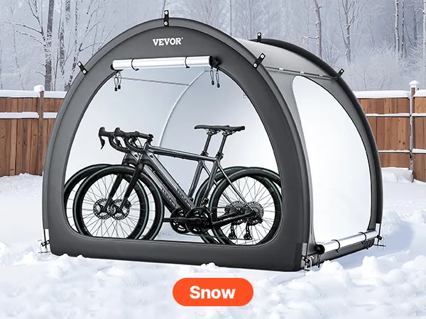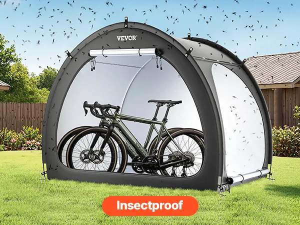 Ventilatie en vochtigheidsregeling: De ventilatieramen bevorderen de luchtstroom en voorkomen effectief de vorming van vocht en condensatie door temperatuurverschillen. Dit ontwerp houdt uw fiets fris en zorgt ervoor dat het interieur droog en schoon blijft, zelfs bij natte of regenachtige omstandigheden. Het biedt ideale opbergruimte voor uw fiets.