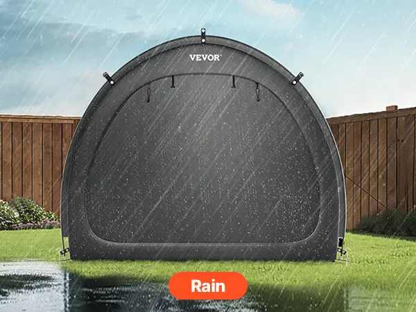 Uitgebreide dekking: onze fietsenstalling is voorzien van een professionele dubbele waterdichte coating en zilvergecoat 210D Oxford-materiaal. De buitenste laag van zilver gecoat 210D Oxford-materiaal in combinatie met een waterdichte PU4000-coating, waterdichte tape over het gehele oppervlak en een gebogen ontwerp voorkomt dat er water ophoopt en de binnenkant droog blijft. Zonwerend materiaal verlengt de levensduur nog verder.