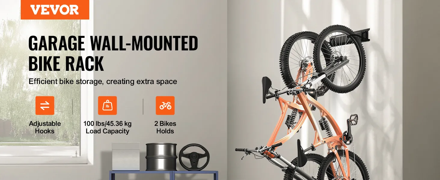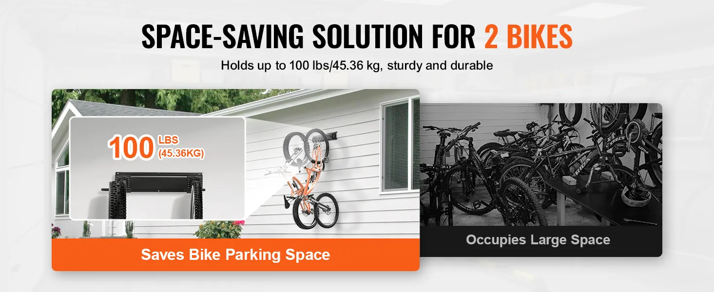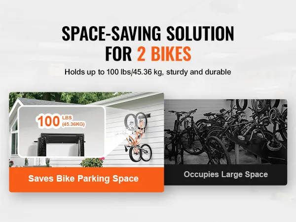 Maximize Your Space: Hang your bikes on the wall with our wall-mounted bike storage rack, designed with a 17 in/431.8 mm rail that supports 2 bicycles. Leave more floor space and enjoy a more spacious area for your activities.