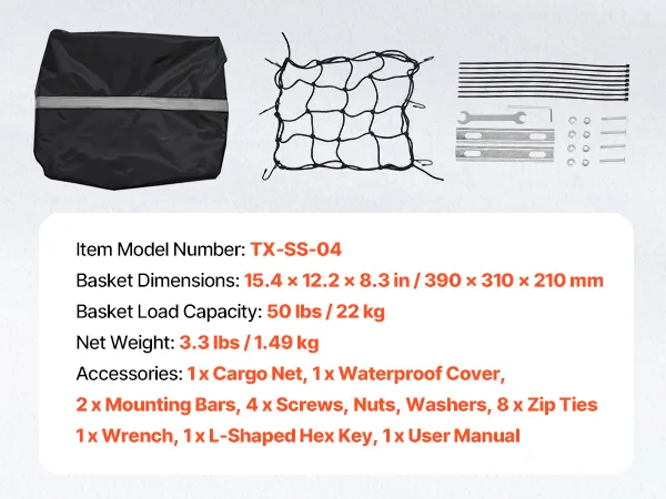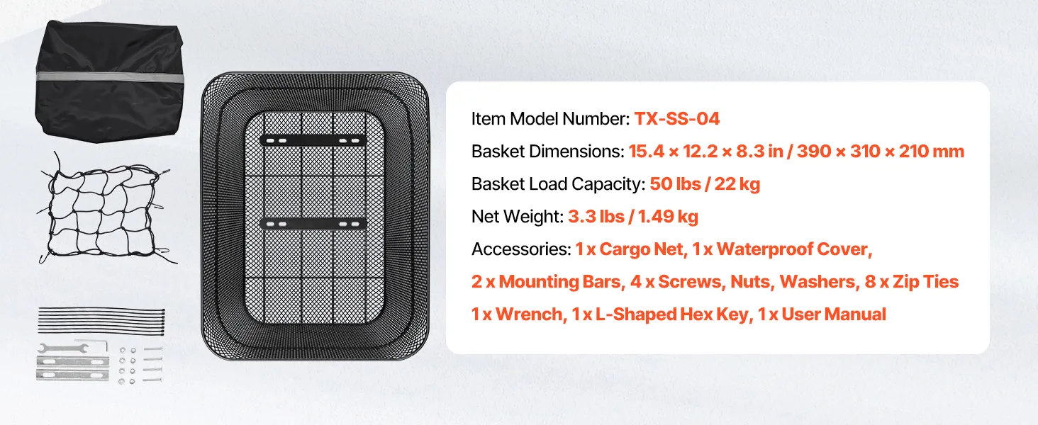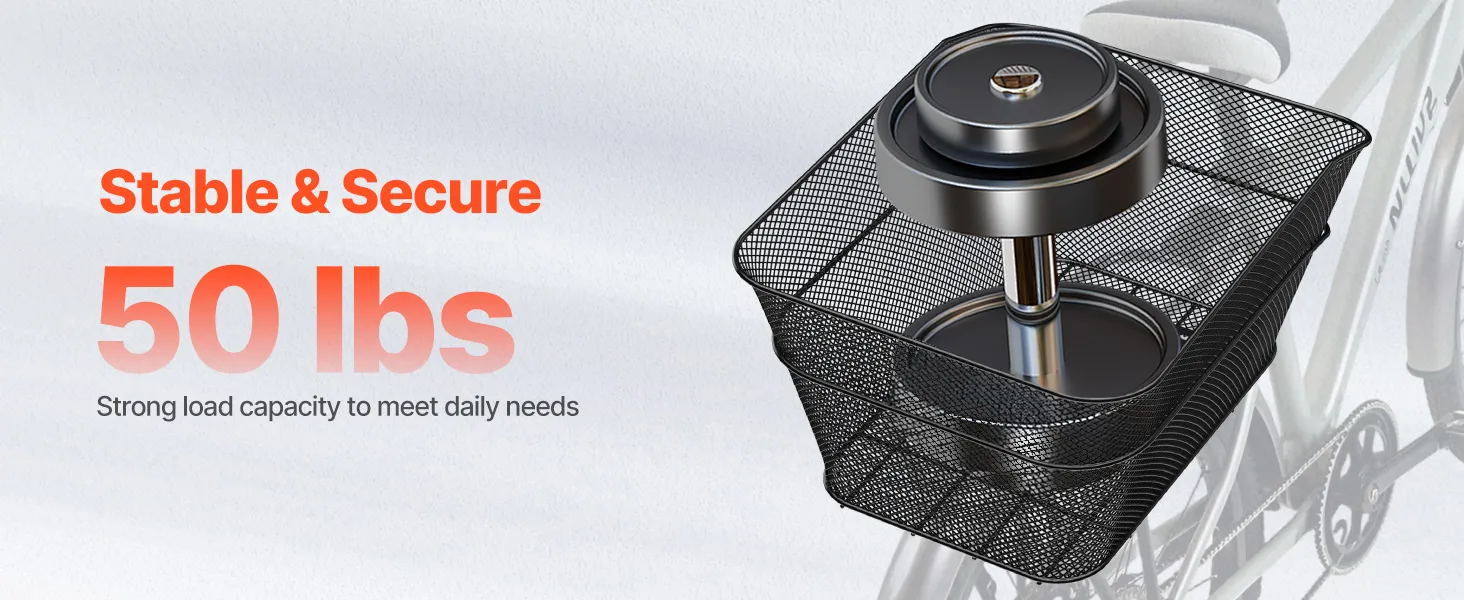 Long-Lasting Construction: Made with heavy-duty metal tubing, this cargo basket for bike provides outstanding strength and stability. The smooth, rust-proof coating ensures it performs well in wet conditions, making it reliable for all types of weather.