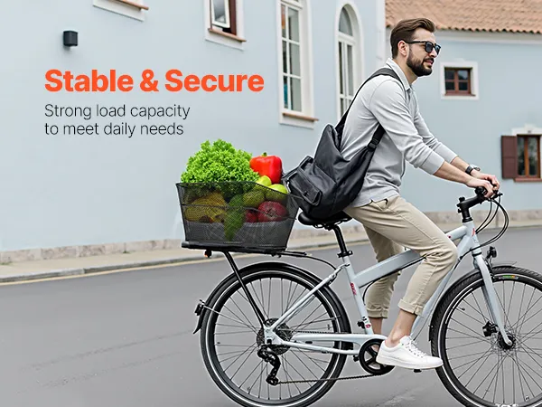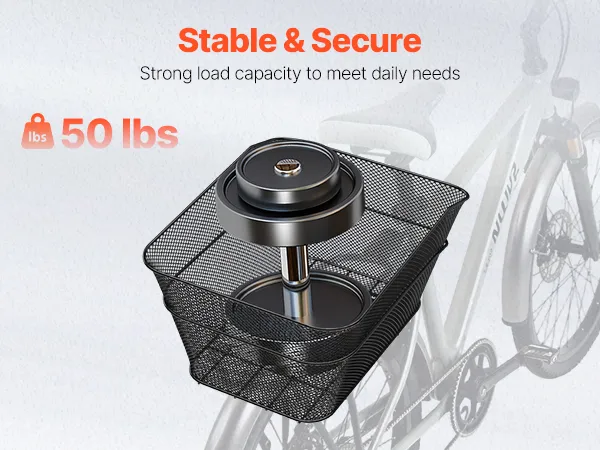 This bicycle rear basket easily supports up to 50 lbs(22 kg), greatly increasing your storage capacity while cycling or shopping.