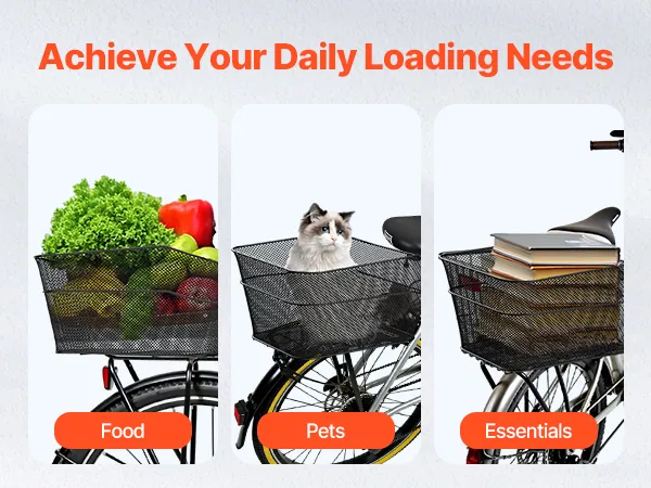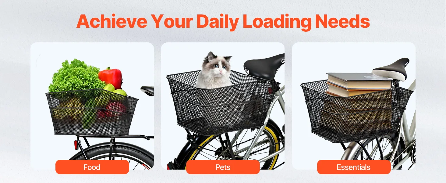 The basket for bike is an ideal tool for transporting luggage, carrying a backpack, pets, or groceries with ease on a daily basis.