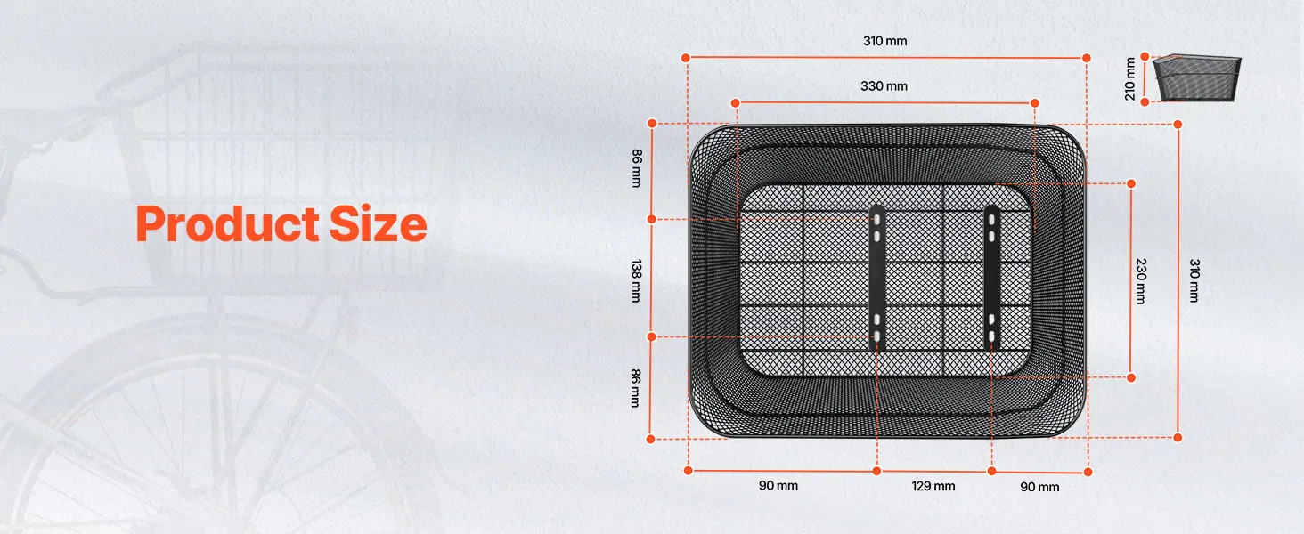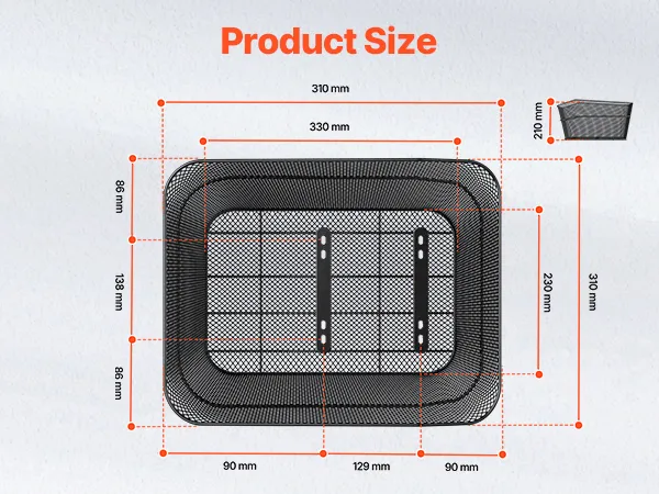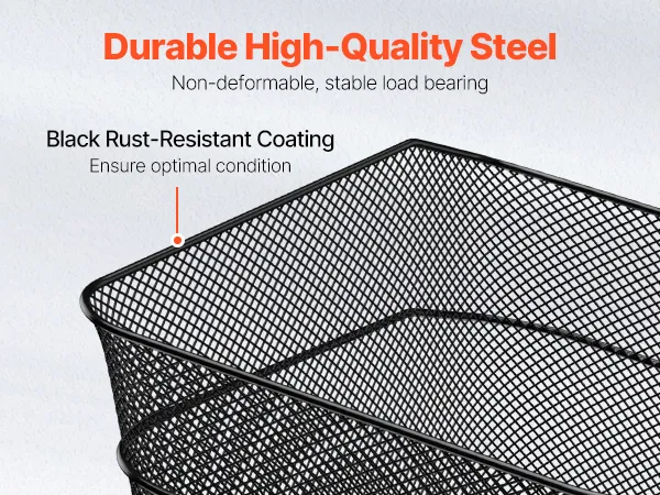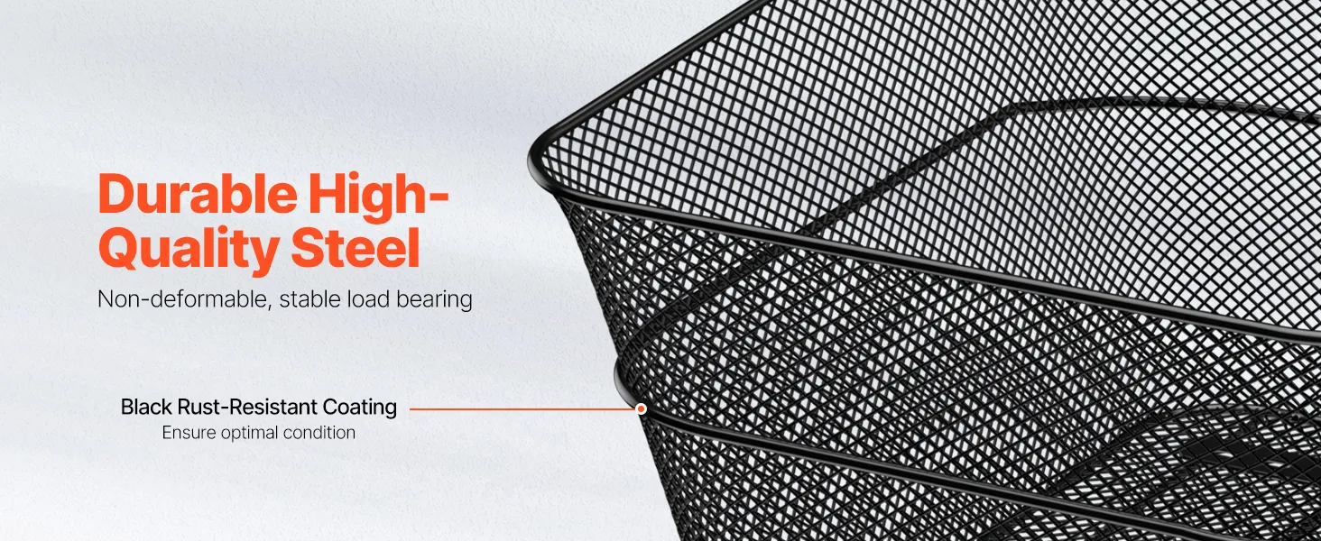Made from sturdy heavy-duty metal, the bike basket ensures durability and resistance to deformation. The smooth, rust-resistant coating makes cycling in humid, rainy weather more comfortable.