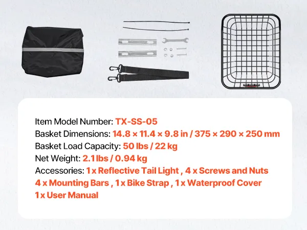 This stylish bike rear basket complements your bike. With a 50 lbs(22 kg) capacity, it's ideal for groceries, pets, or luggage. Made from durable metal with a rust-resistant coating, this bicycle basket is easy to install, clean, and ideal for daily use.