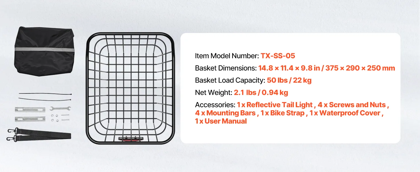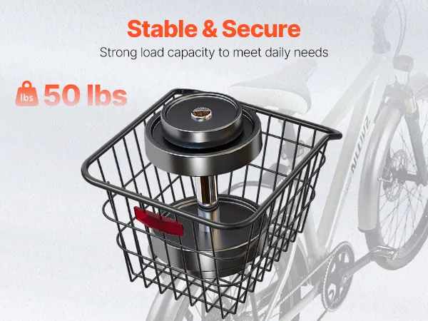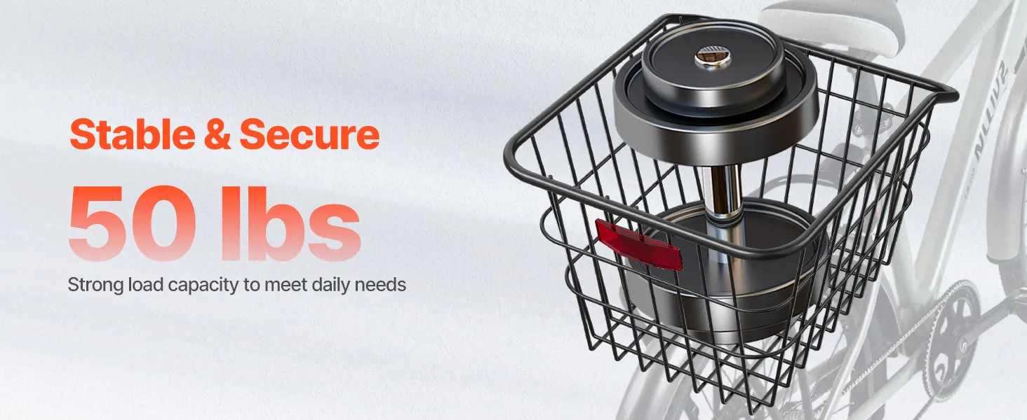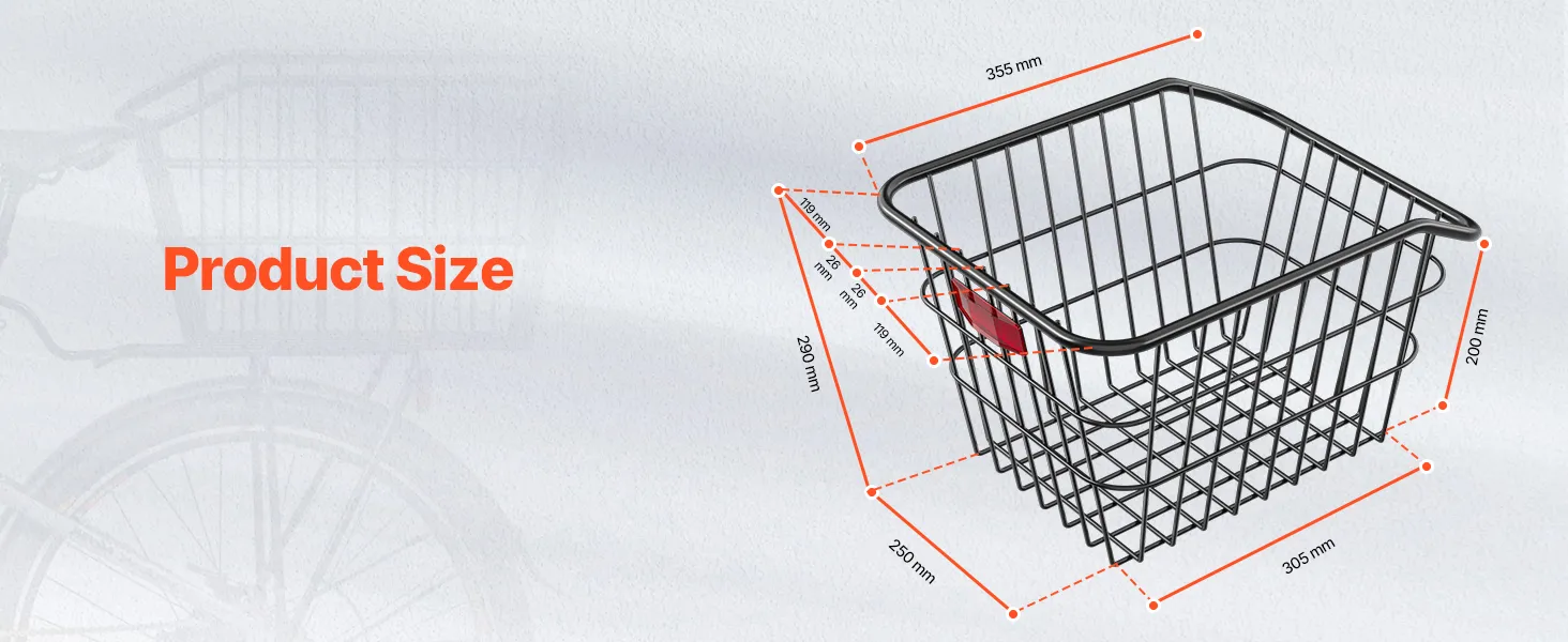Long-Lasting Construction: Made with heavy-duty metal tubing, this cargo basket for bike provides outstanding strength and stability. The smooth, rust-proof coating ensures it performs well in wet conditions, making it reliable for all types of weather.