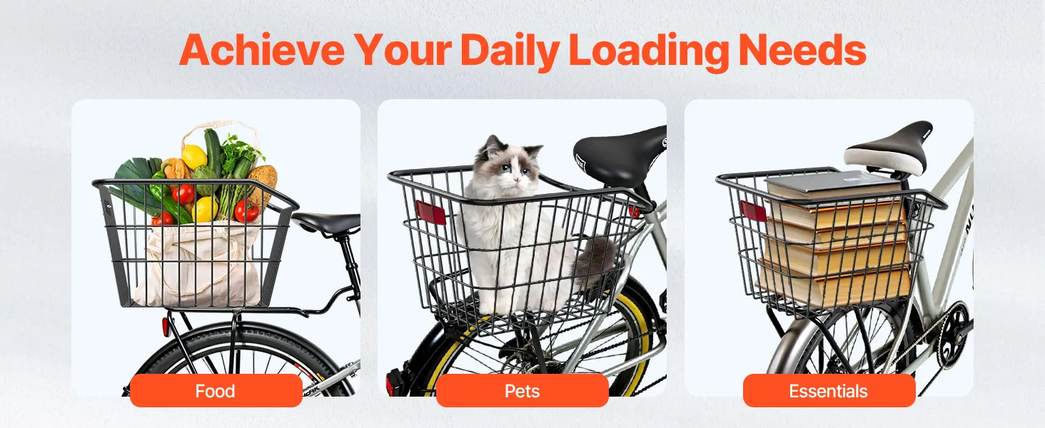 The basket for bike is an ideal tool for transporting luggage, carrying a backpack, pets, or groceries with ease on a daily basis.
