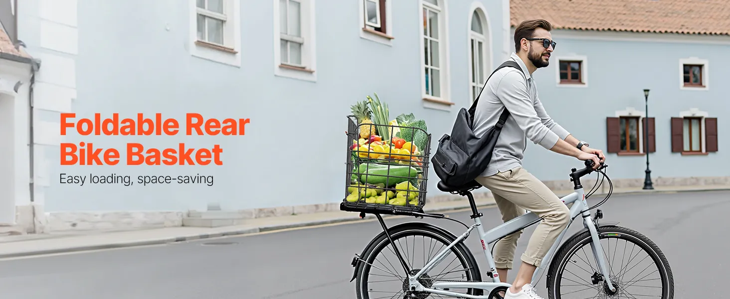 Deze opvouwbare fietsmand voor achterop de fiets overtuigt door zijn moderne design dat perfect bij uw fiets past. Met een draagvermogen van 22 kg is hij ideaal voor boodschappen, huisdieren of bagage. Het is gemaakt van stevig metaal met een roestwerende coating, is eenvoudig te monteren en opvouwbaar voor eenvoudige opslag.