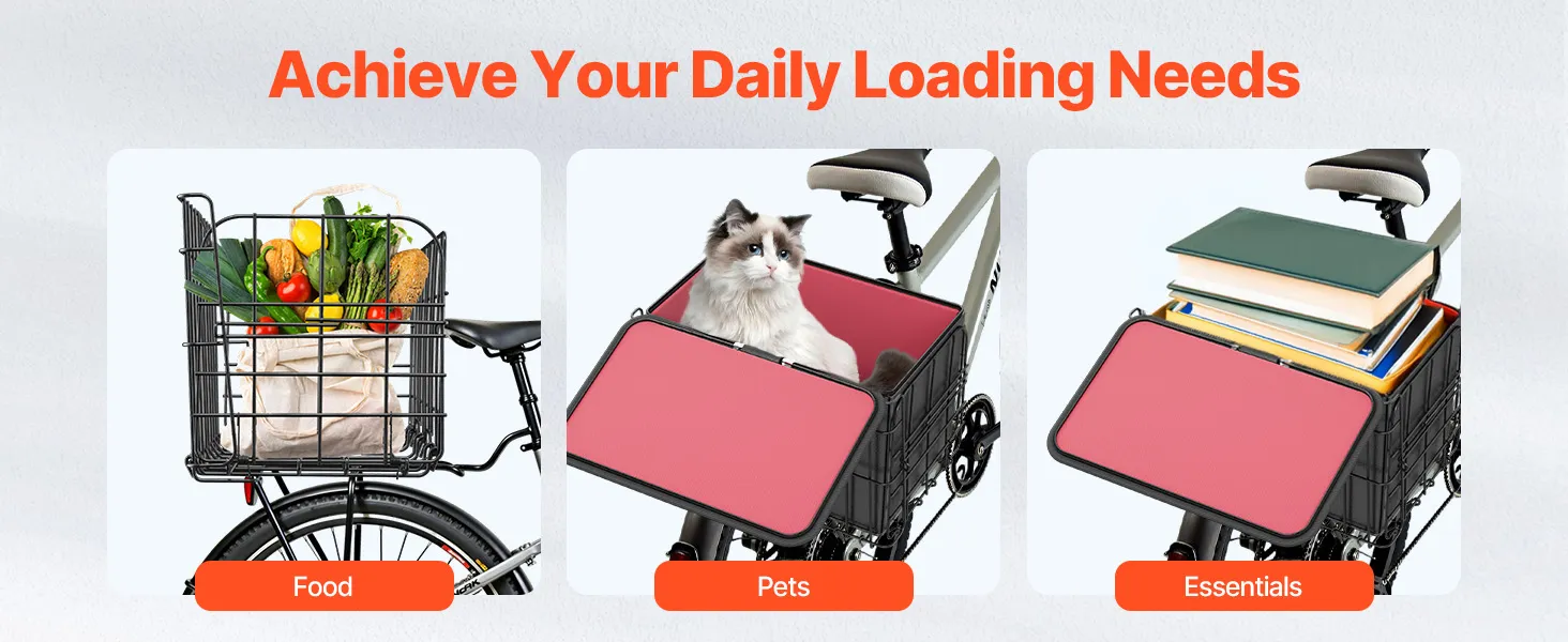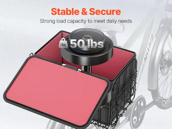 De fietsmand achterop de fiets draagt gemakkelijk 22 kg, waardoor u uw opbergruimte tijdens het fietsen of winkelen aanzienlijk vergroot.