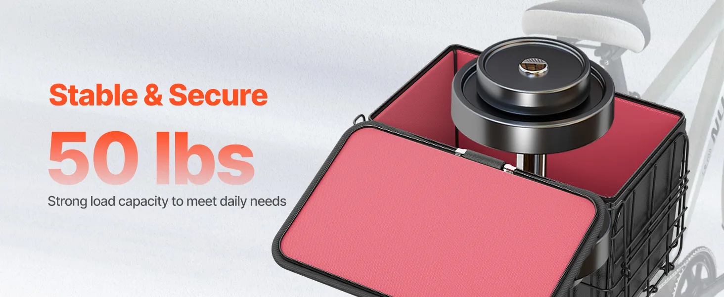 Uitstekend draagvermogen: de fietsmand kan tot 22 kg dragen en weegt slechts 1,2 kg. Het is duurzaam en bestand tegen vervorming en biedt een betrouwbare opbergoplossing voor uw fietstochten of dagelijkse boodschappen.