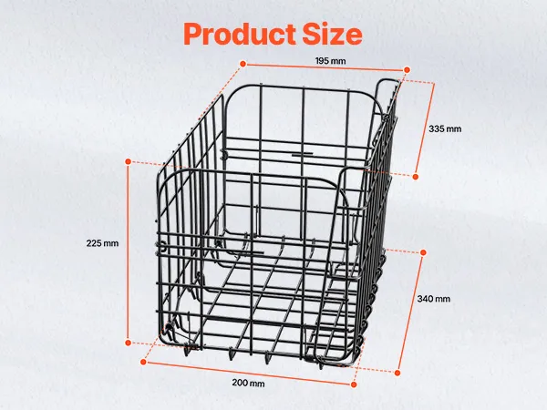 Hoogwaardige materialen: Deze fietsmand is gemaakt van stevige metalen buizen voor uitstekende stabiliteit en duurzaamheid. De roestwerende coating garandeert betrouwbare prestaties onder alle weersomstandigheden en is ideaal voor gebruik met uw fietsmand.