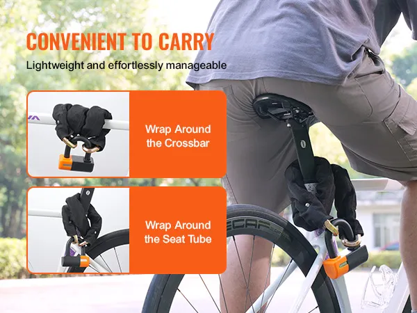 Dit fietsslot kan tijdens het rijden eenvoudig om het fietsframe en de zadelpen worden gewikkeld. Dit maakt hem draagbaar en vermindert de last voor u wanneer u onderweg bent. De perfecte balans tussen veiligheid en comfort.