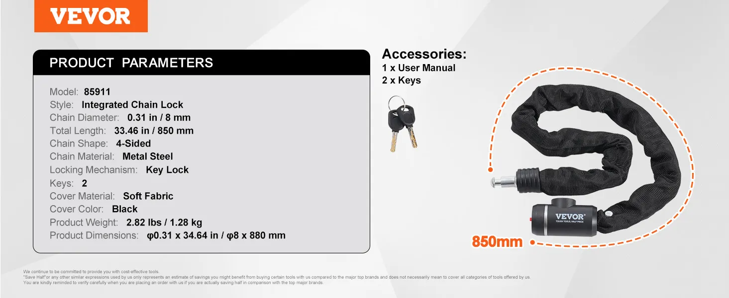 VEVOR fietskettingslot – uw betrouwbare metgezel!