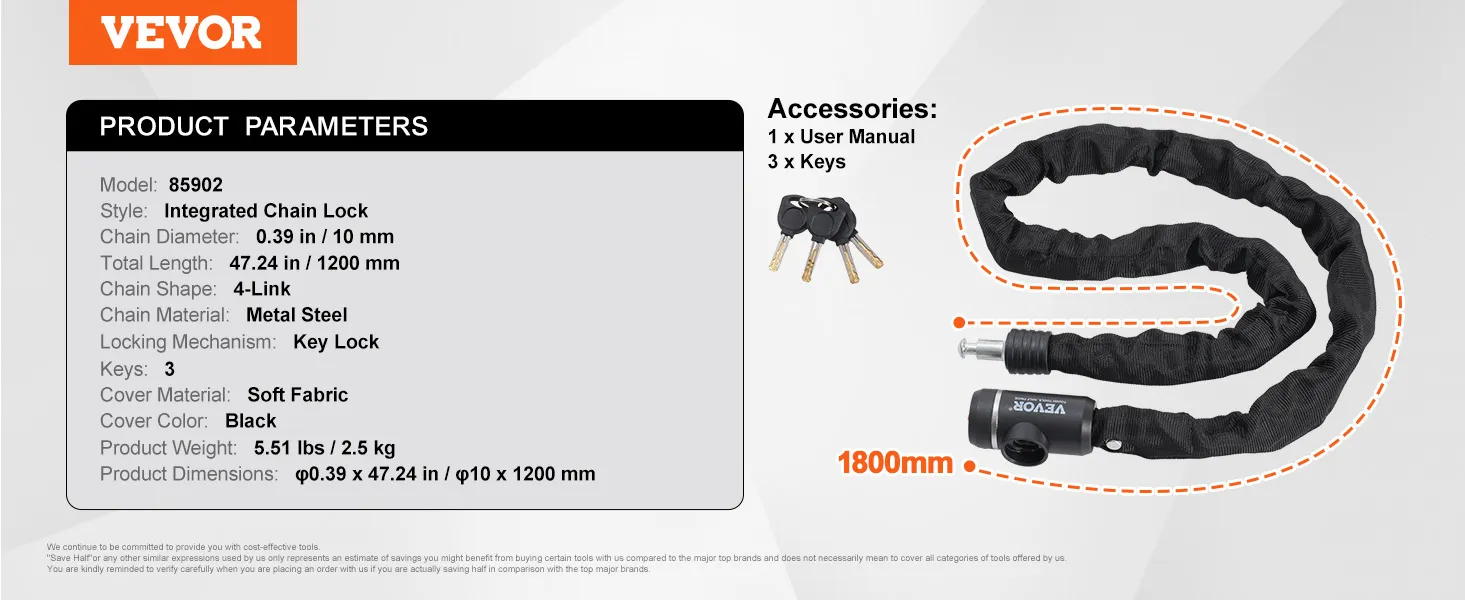 VEVOR Bicycle Chain Lock-Your Trusted Companion for Worry-free Cycling!