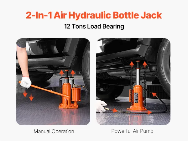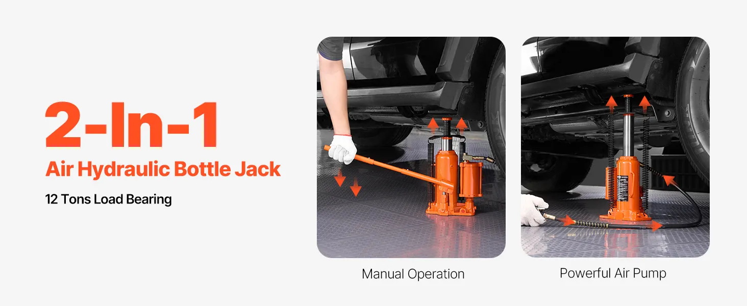2-in-1 hydraulisch ontwerp: met onze pneumatische krik kunt u eenvoudig schakelen tussen hydraulische en pneumatische modi, waardoor u tijd en moeite bespaart bij zware heftaken zoals het heffen van grote voertuigen, inclusief vrachtwagens.