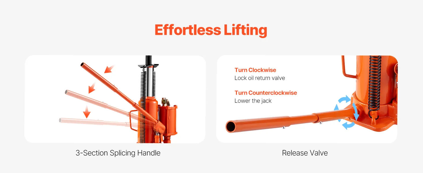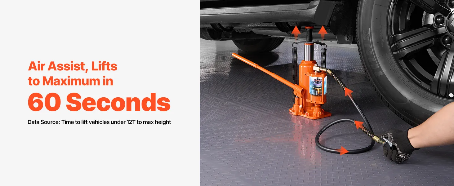 De meegeleverde luchtpomp van aluminiumlegering in onze luchtfleskrik helpt zware voertuigen en voorwerpen met minder inspanning op te tillen, waardoor u tijd en energie bespaart.