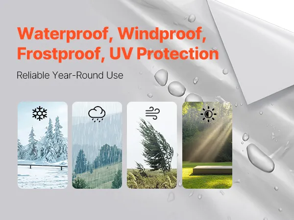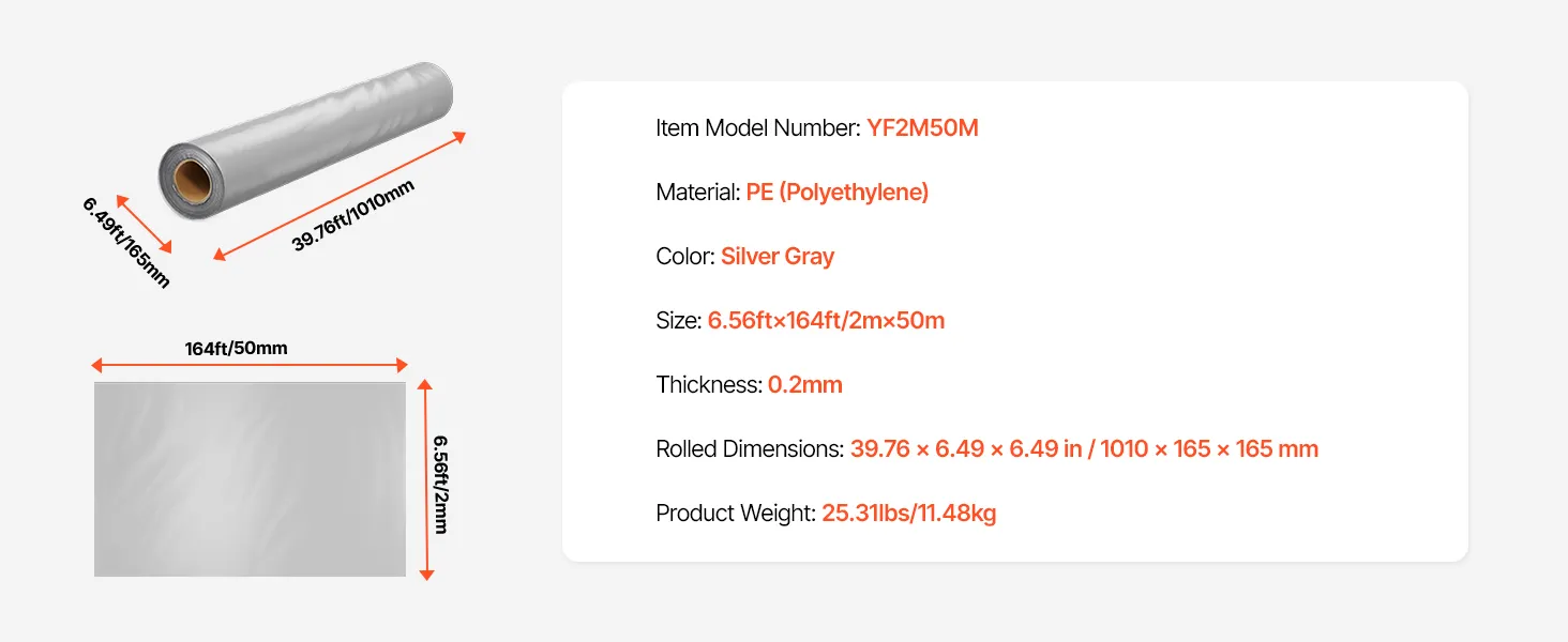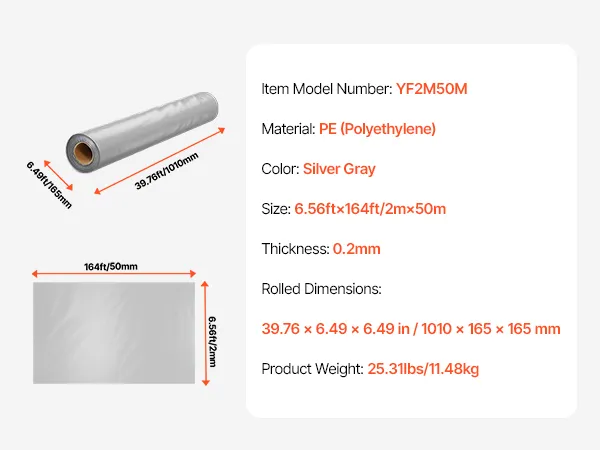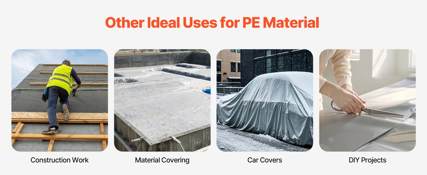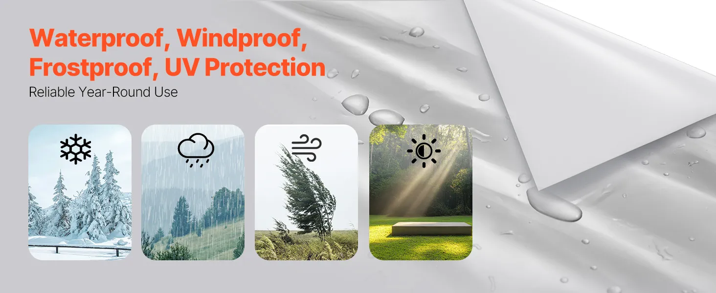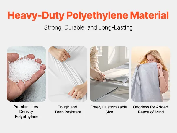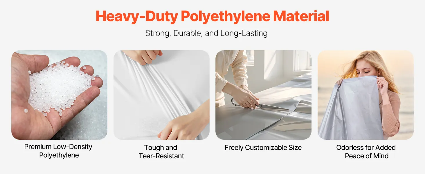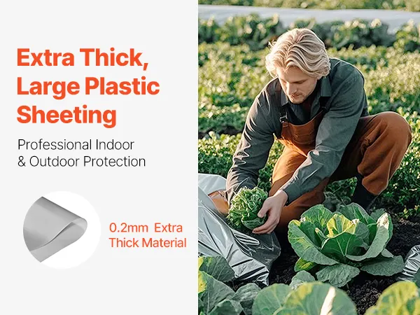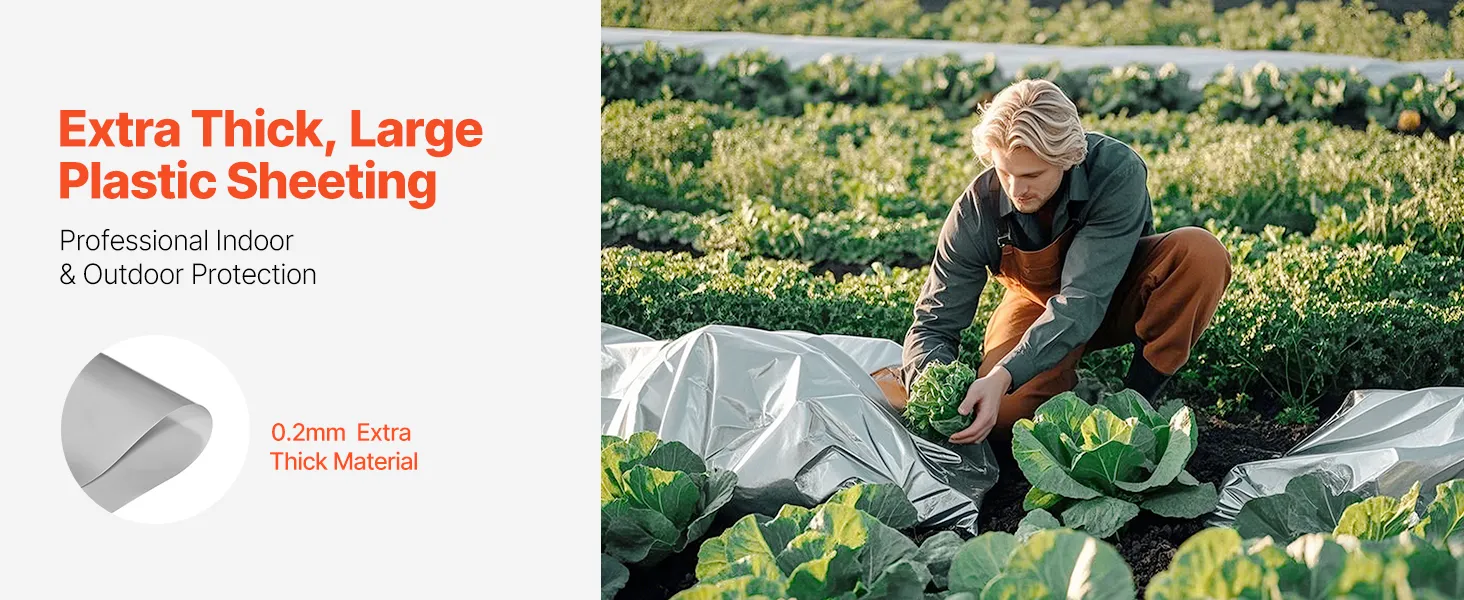 Superieure duurzaamheid en weersbestendigheid: Gemaakt van 8mil / 0,2 mm dik polyethyleen, biedt dit kunststof vel uitstekende taaiheid en duurzaamheid. Het is scheurvast en bestand tegen zware omstandigheden zoals harde wind, koude temperaturen en extreme zonlicht, waardoor het een lange levensduur heeft.