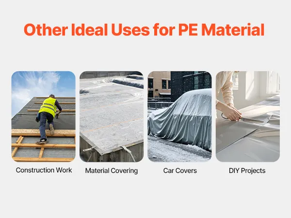 Deze kunststoffolie dient als onkruidwering, vochtwering, lakbeschermingslaag, stofwering of spatwaterwering. Het wordt veel gebruikt voor het beschermen van hekken, isolatie, vochtbescherming, lichtwering en nog veel meer.
