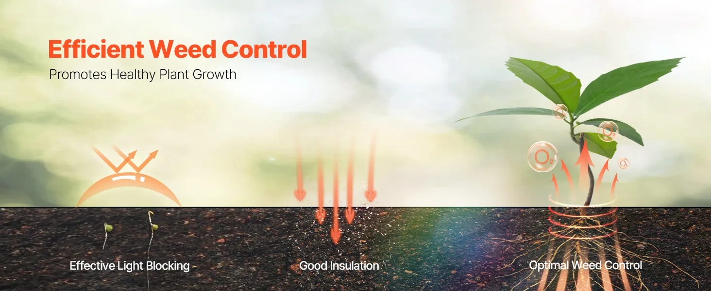 The black surface is highly opaque, effectively blocking sun and reducing weed growth, protecting your flowers, vegetables, and other plants from invasive weeds.