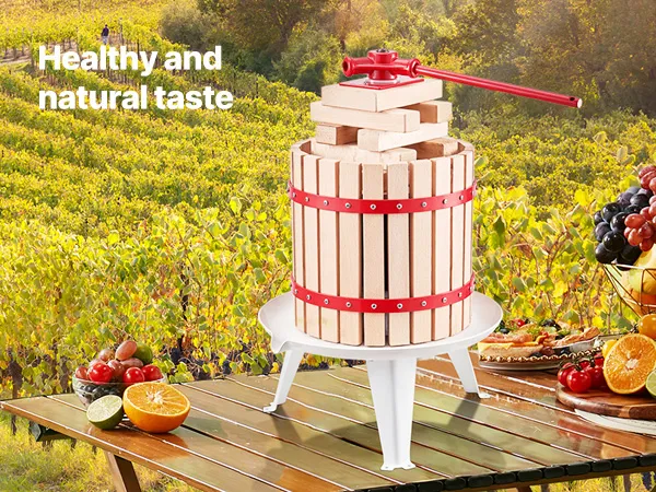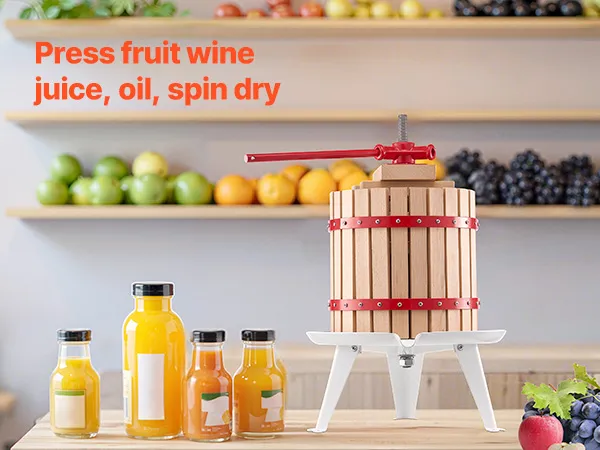 Veelzijdig: Deze wijnpers kan worden gebruikt om diverse soorten fruit te persen tot vers, gezond sap, maar ook voor het persen van fruitwijn, kaas, fruitpuree, olijfolie en meer. Hij is geschikt voor familiebijeenkomsten, restaurants, wijnhuizen, boerderijen en sapwinkels.