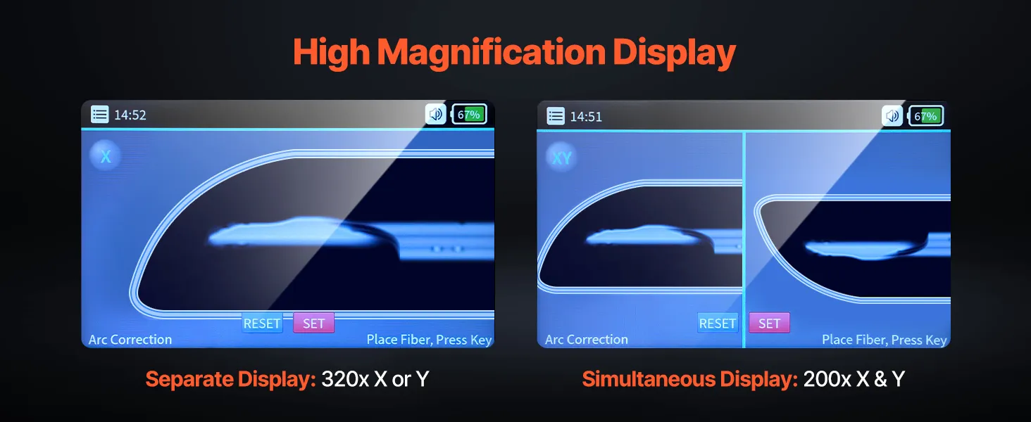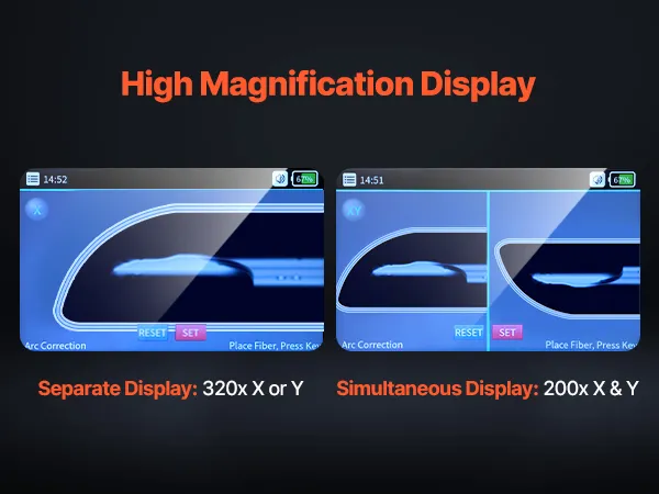High-Definition Display: 5-inch digital LCD screen offers intuitive display and real-time monitoring of the splicing process. It offers an independent 320x X or Y display or simultaneous 200x X/Y display—ensuring clear and visible fiber cores.