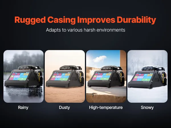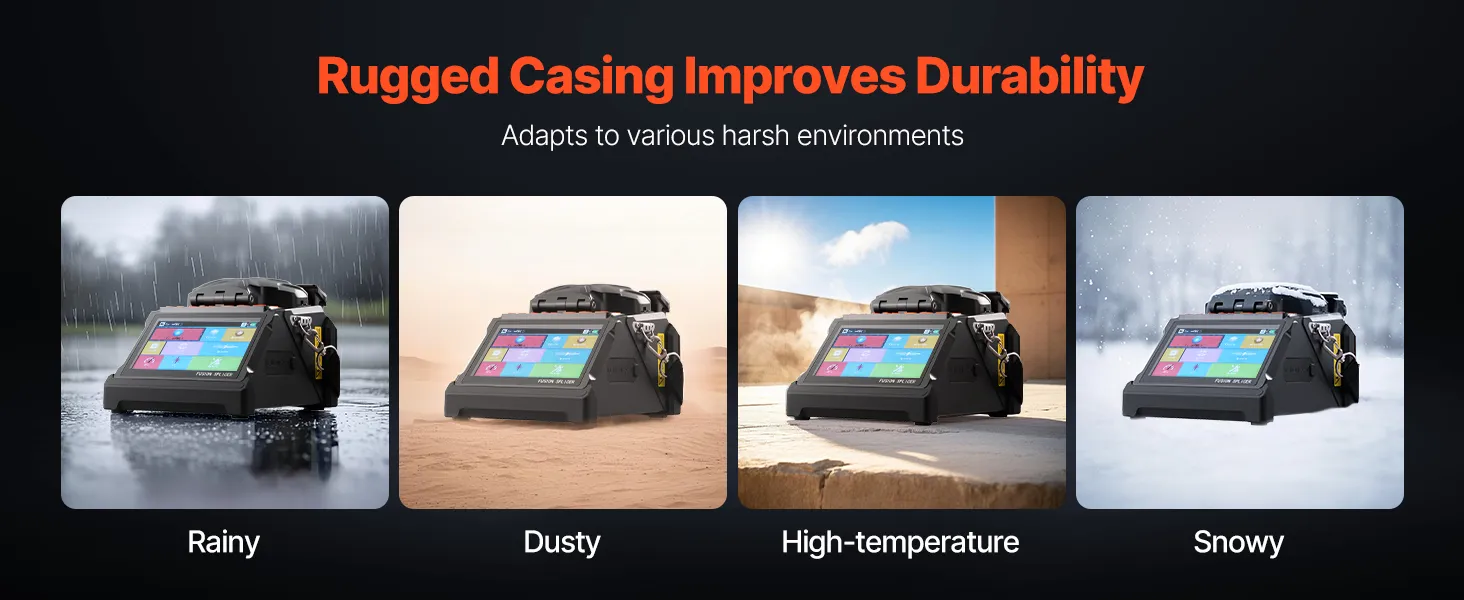 Built with sturdy material and casting, this core clad alignment fusion splicer ensures reliable performance in rainy, dusty, high-temperature, and snowy conditions, making it ideal for challenging outdoor applications.