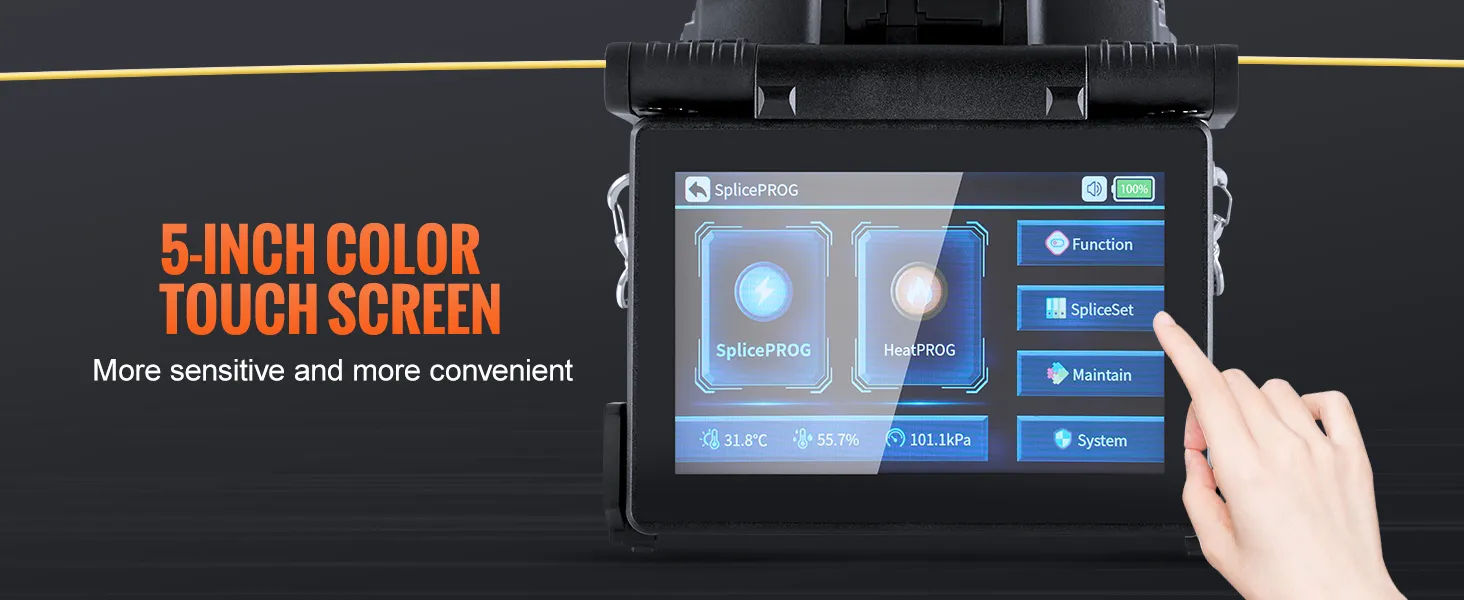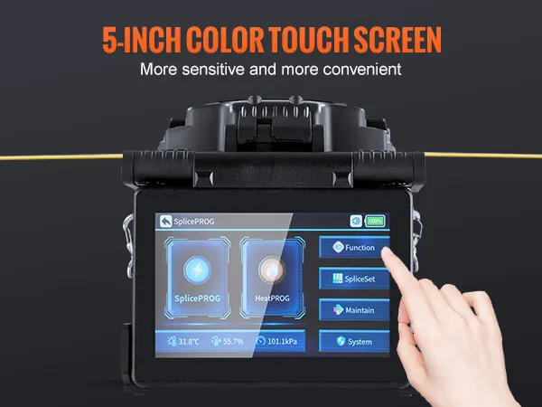 Scherm met hoge resolutie: het 5-inch kleurenaanraakscherm biedt meerdere weergavemodi en duidelijk zicht. Het biedt een onafhankelijk 330x X- of Y-vergrotingsdisplay, dubbelklik om in te zoomen tot 1100x; en een gelijktijdige 200x X/Y-weergave – voor duidelijke en zichtbare vezelkernen.