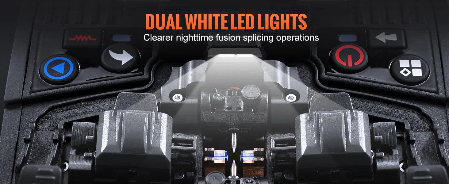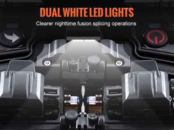 Geïntegreerde dubbele LED-lampen zorgen voor uitstekende verlichting. Deze optische fusielasmachine maakt een nauwkeurige vezeluitlijning mogelijk, zelfs bij weinig licht of buitenshuis. Werk betrouwbaar, ongeacht de lichtomstandigheden.