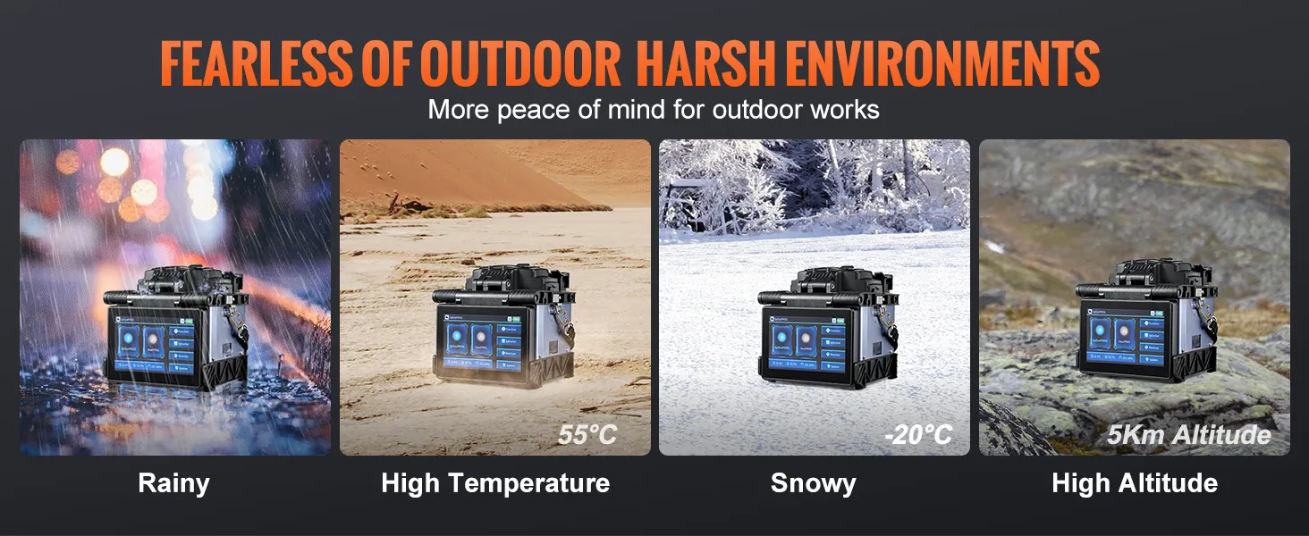 Deze kernuitlijningsfusielasmachine is ontworpen met versterkte bescherming en presteert betrouwbaar onder extreme omstandigheden, waaronder regen, hoge temperaturen, sneeuwstormen en grote hoogten, waardoor hij ideaal is voor veeleisende buitentoepassingen.