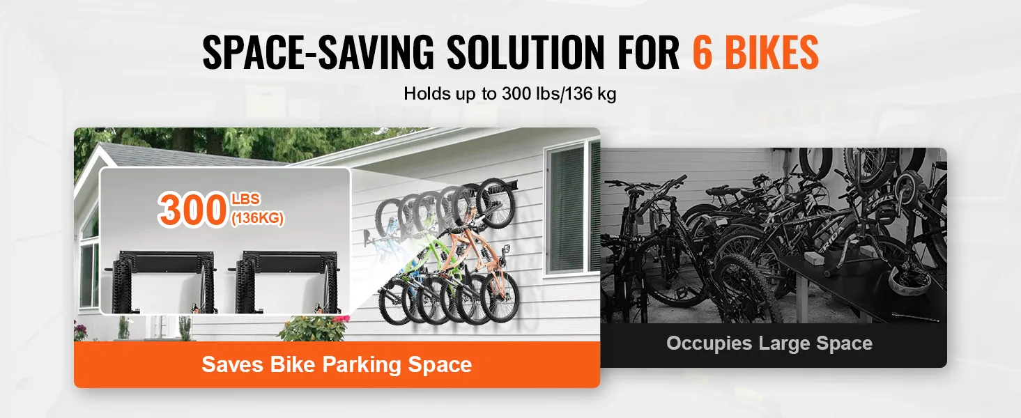 Maximize Your Space: Hang your bikes on the wall with our wall-mounted bike storage rack, designed with a 68 in/1727.2 mm rail that supports 6 bicycles. Leave more floor space and enjoy a more spacious area for your activities.