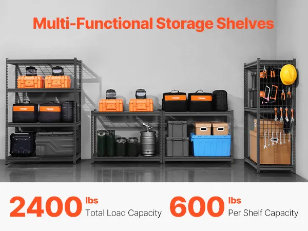MULTIFUNCTIONEEL - Dit garageopbergrek is ideaal voor keukens, garages, werkplaatsen, supermarkten en meer. Het voldoet aan uw uiteenlopende ruimtevereisten en helpt u uw spullen op een georganiseerde manier op te bergen.