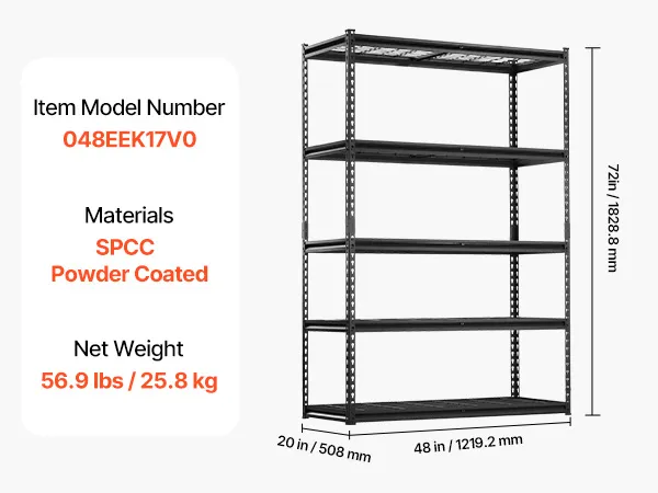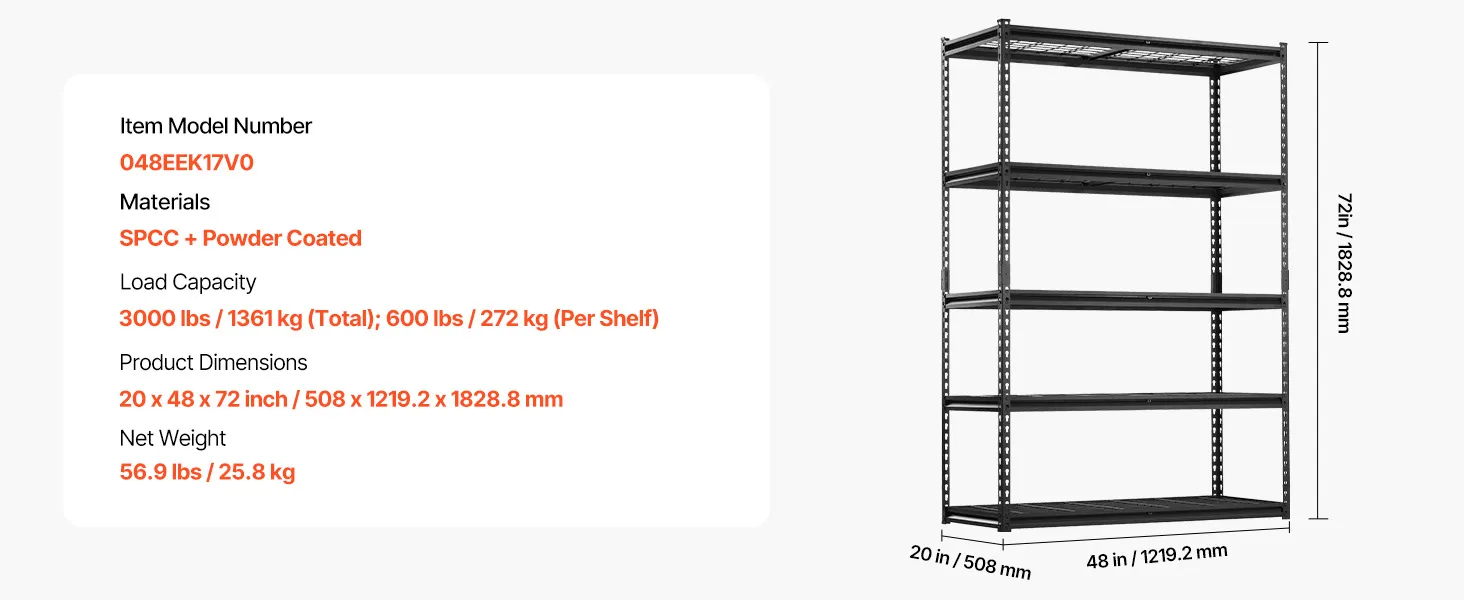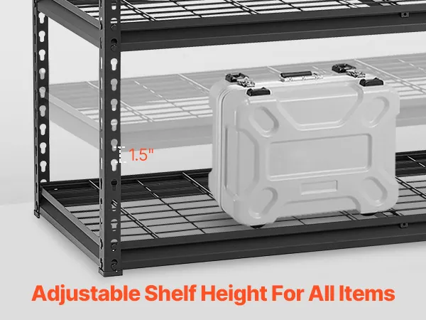 1361 kg draagvermogen: met een maximaal totaal draagvermogen van 1361 kg en 272 kg per plank kunt u met ons garagerek meer spullen en gereedschap in uw garage of magazijn opbergen.