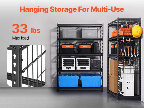 MULTIFUNCTIONEEL - Dit garageopbergrek is ideaal voor keukens, garages, werkplaatsen, supermarkten en meer. Het voldoet aan uw uiteenlopende ruimtevereisten en helpt u uw spullen op een georganiseerde manier op te bergen.