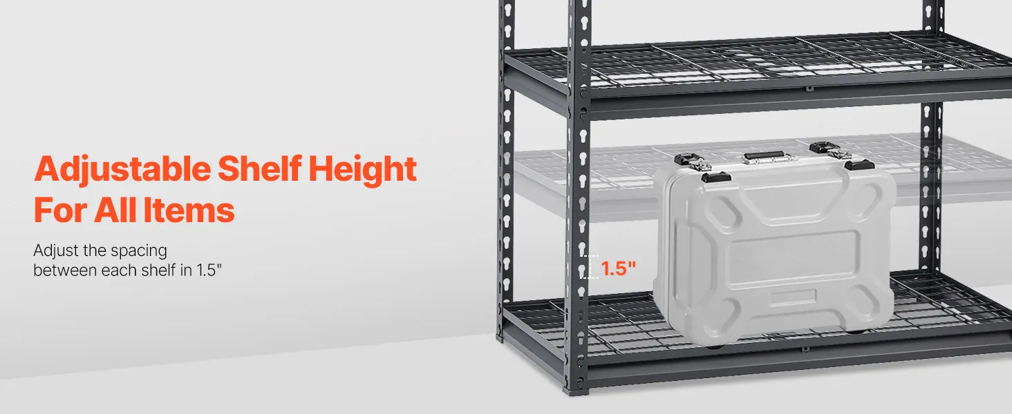 Het ontwerp met pompoengesp van de garageplanken maakt een eenvoudige hoogteverstelling mogelijk, biedt plaats aan items van verschillende grootte en maximaliseert het gebruik van de ruimte.