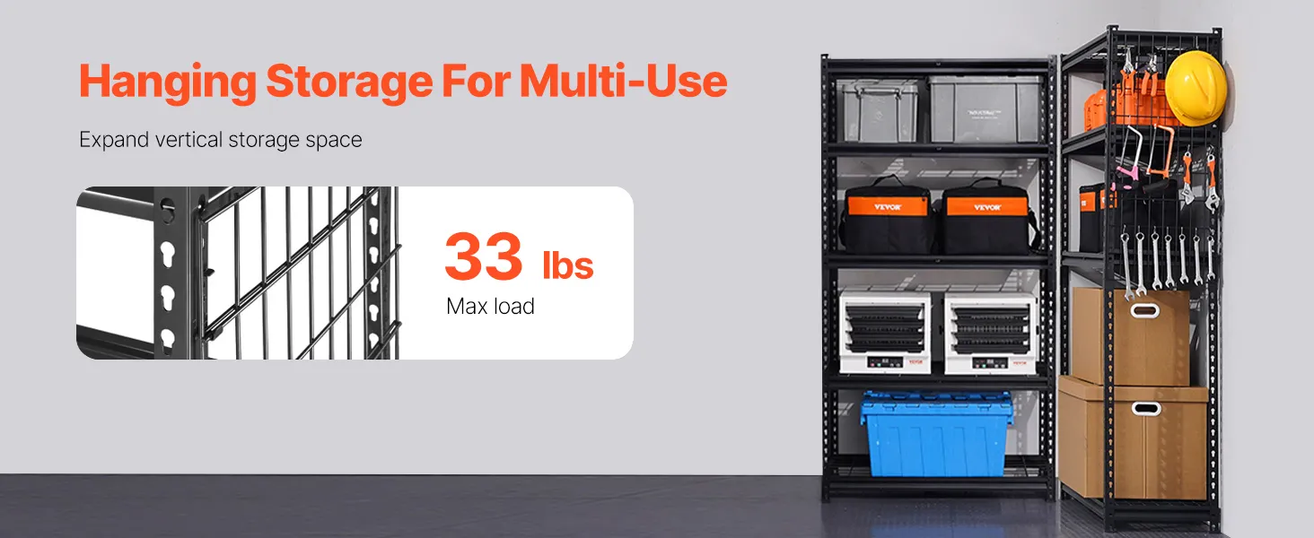 MULTIFUNCTIONEEL - Dit garageopbergrek is ideaal voor keukens, garages, werkplaatsen, supermarkten en meer. Het voldoet aan uw uiteenlopende ruimtevereisten en helpt u uw spullen op een georganiseerde manier op te bergen.