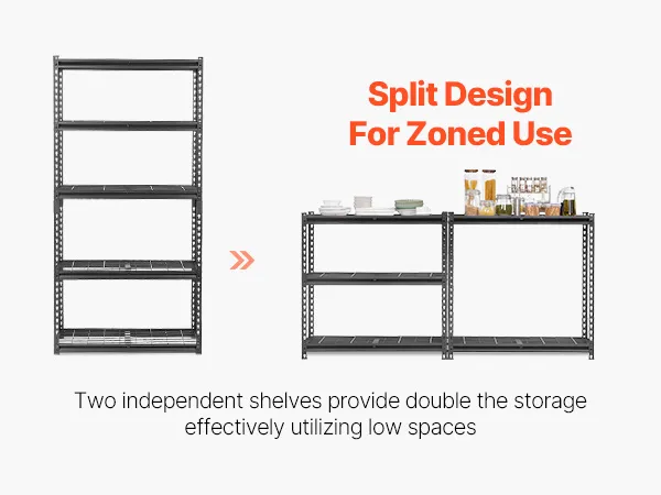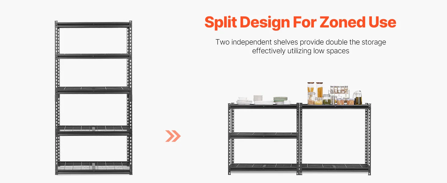 Het gespleten ontwerp van het garageopslagrek zorgt voor maximale opslagfunctionaliteit in ruimtes met beperkte hoogte, zoals onder trappen, kelders en zolders.