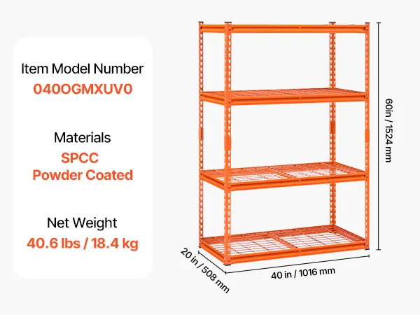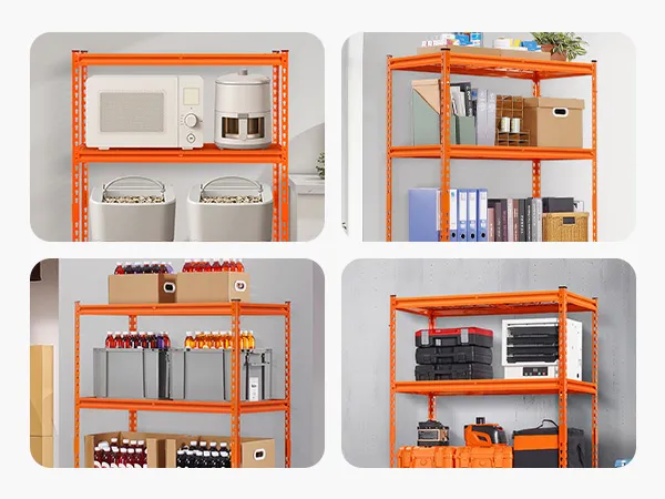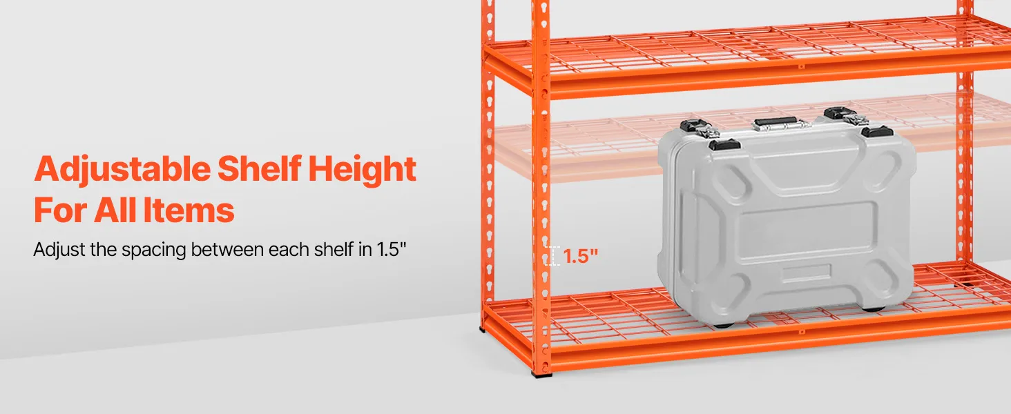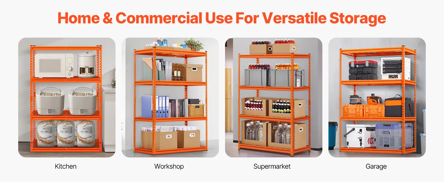 VEVOR Opslagstelling, 1089 kg, 4-laags zware garagestelling, 508 x 1016 x 1524 mm, verstelbare stellingkast voor industriële stellingen, stellingen voor algemeen gebruik, kelderstelling voor keuken, magazijn, kelder, oranje