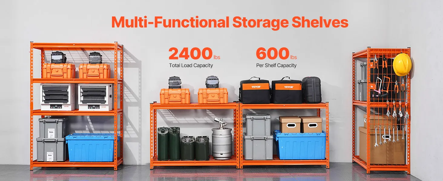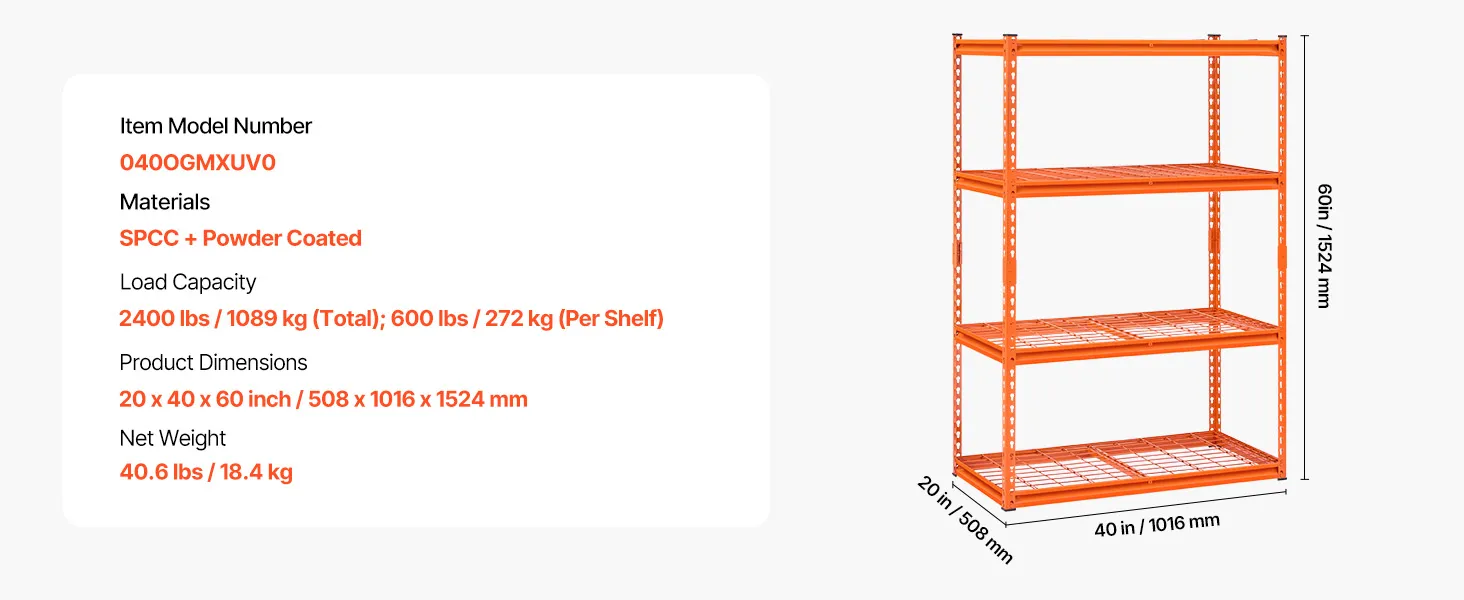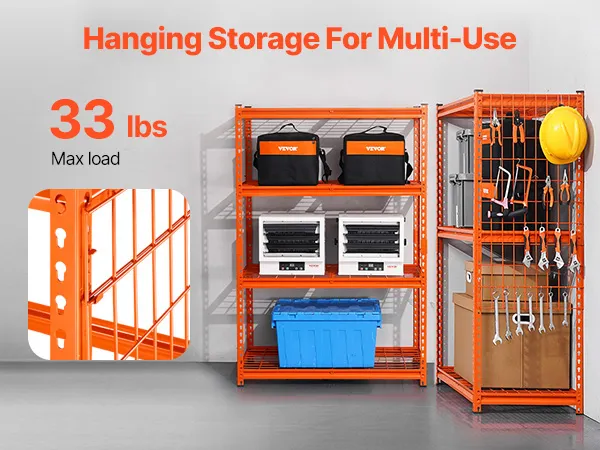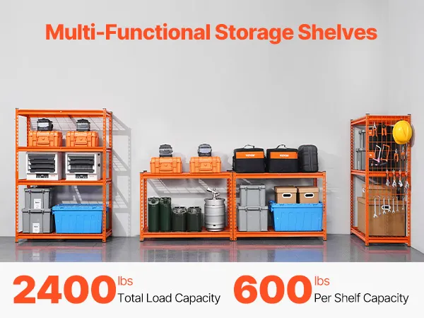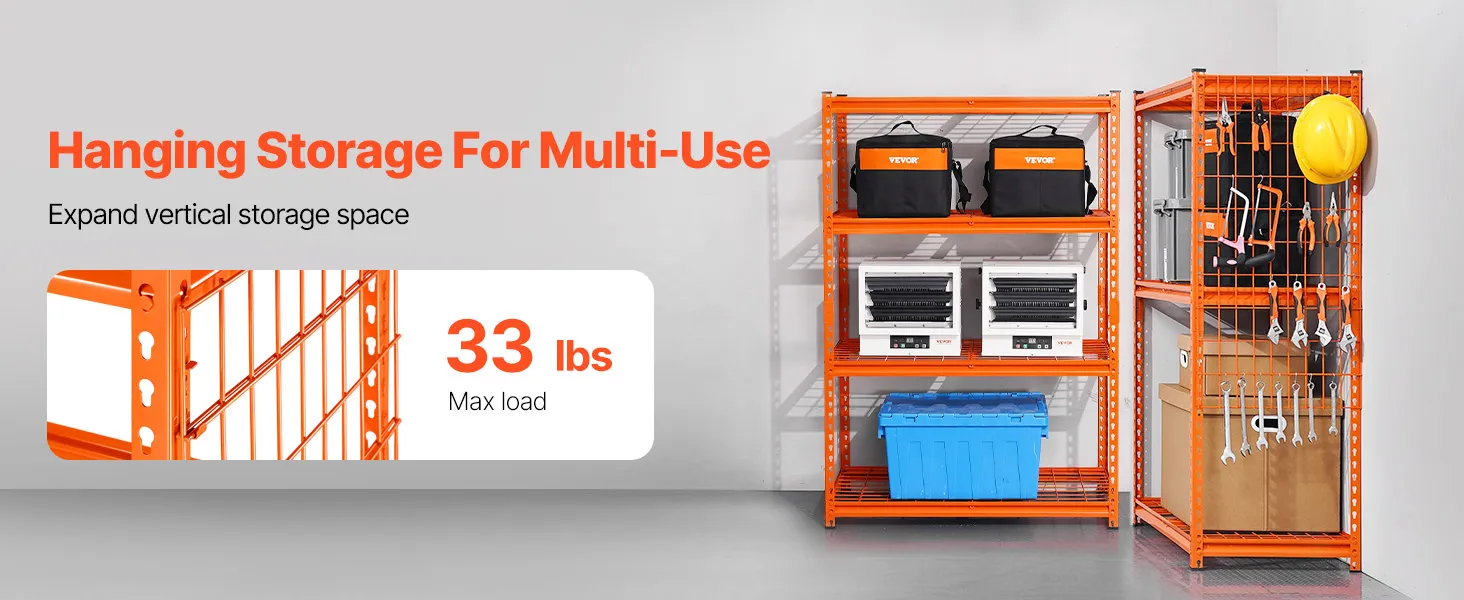 Draagvermogen van 2400 lbs: Met een maximaal totaal draagvermogen van 1089 kg/2400 lbs en een plank van 272 kg/600 lbs kunt u met ons garagerek meer spullen en gereedschap in uw garage of magazijn opbergen.