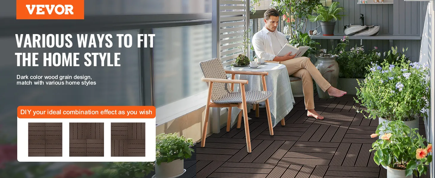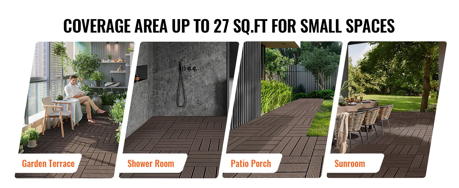 Durable and Low-Maintenance: Made from High-density composite wood plastic, the balcony floor covering is suitable for all seasons, expansion-resistant, easy to clean, and has a wood-like appearance that blends beautifully, perfect for green-minded users.