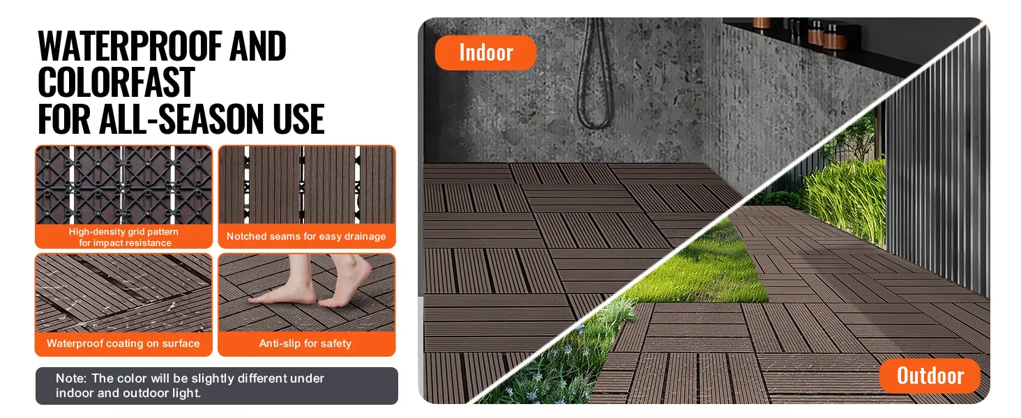Waterproof and Slip-Resistant: The surface features a special anti-slip coating, with grooves and drainage gaps to ensure quick water runoff during rainy seasons, preventing puddles and slips.