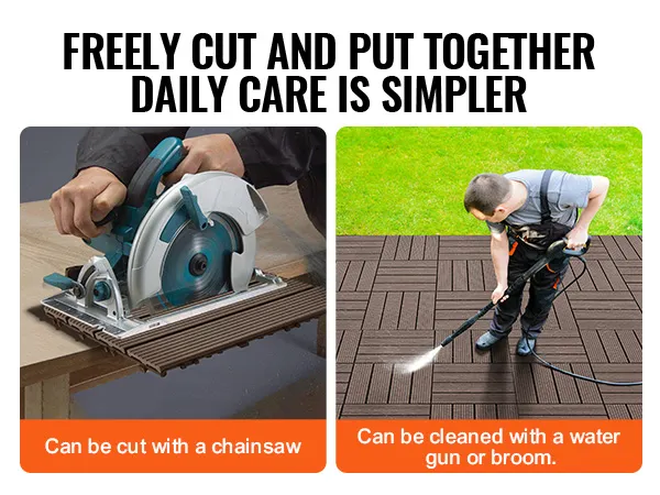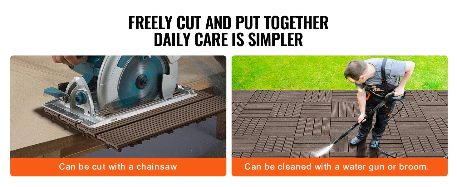 Simply snap the tiles together for quick installation. You can also use a power saw for cutting and reassembling. Regular maintenance is as easy as rinsing them off.