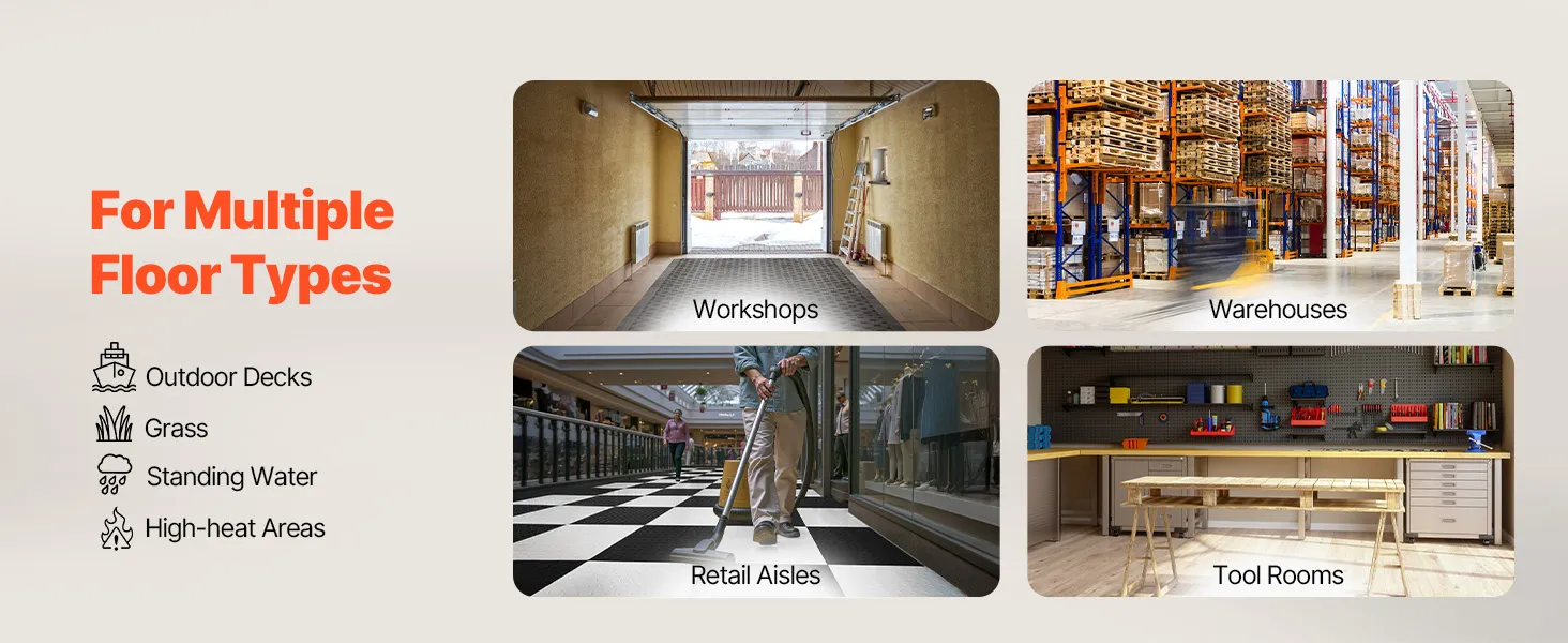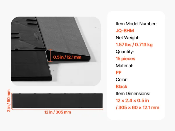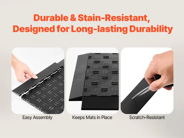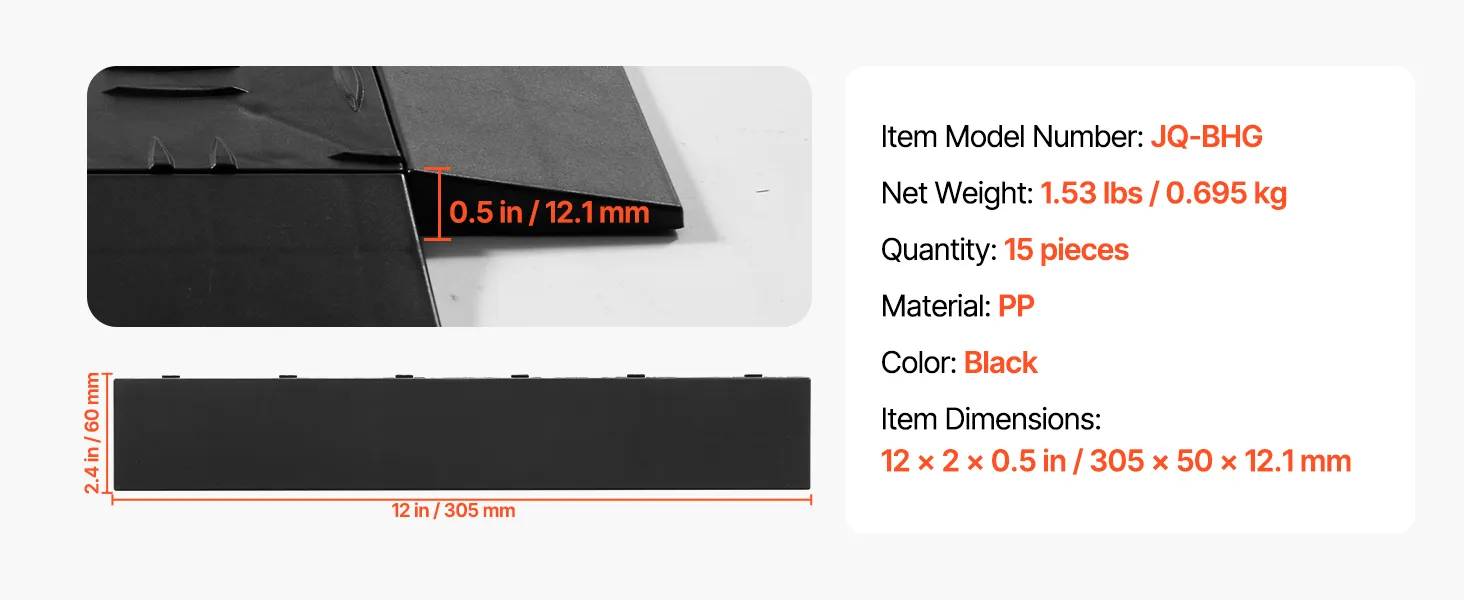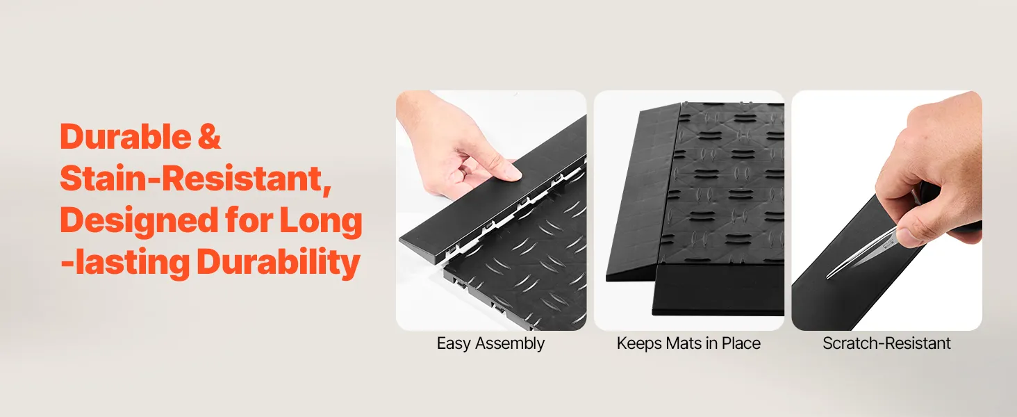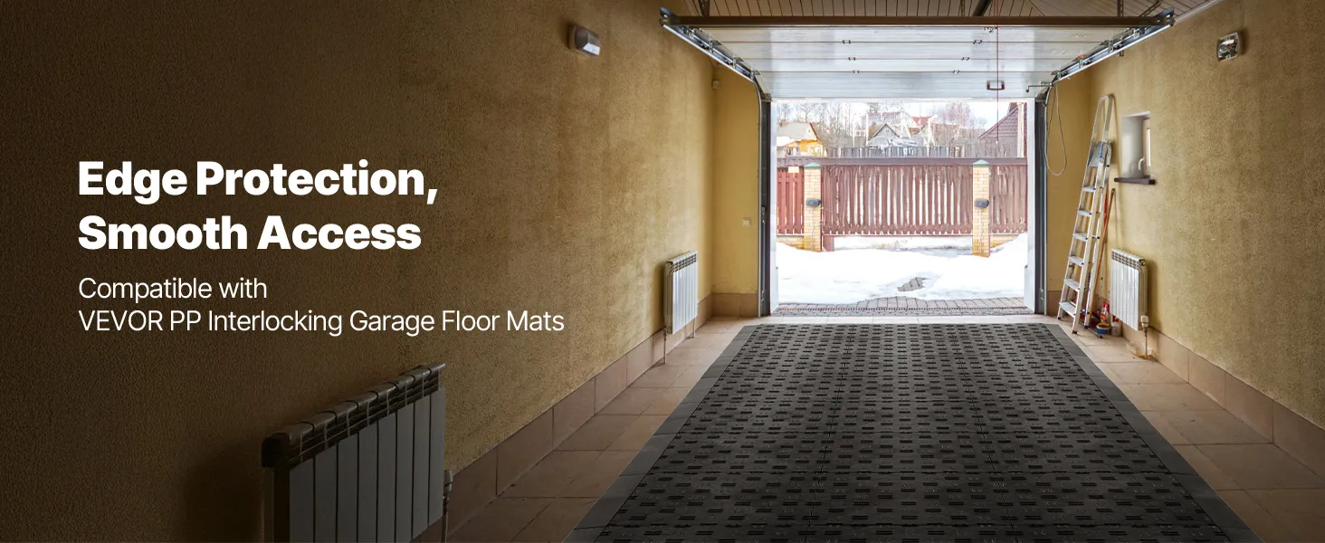 Randbescherming voor vloermatten: Deze randstripsets beschermen de met VEVOR PP verbeterde 6-Lock garagevloermatten en verminderen zo het losraken, verschuiven, oprollen en de ophoping van stof of water.