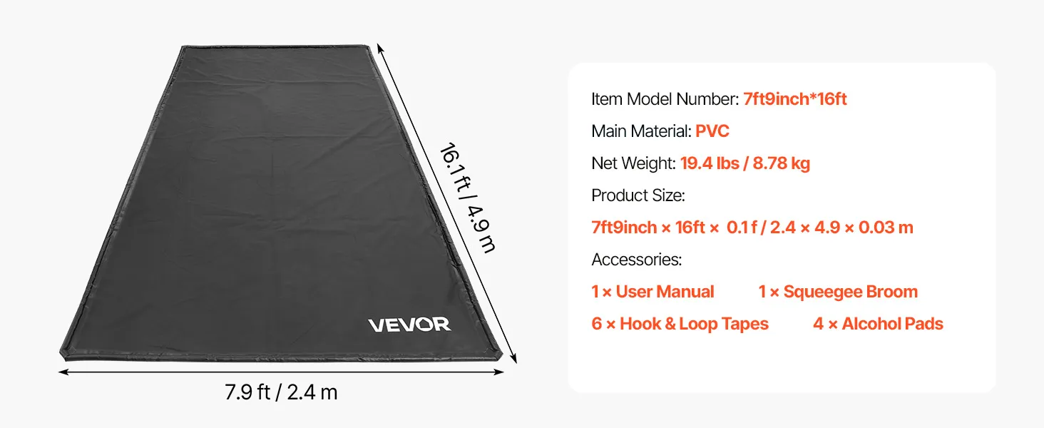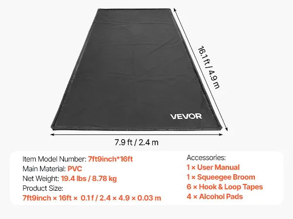 Deze lekbak van 2,4 x 4,9 m, gemaakt van hoogwaardig PVC, is geschikt voor diverse voertuigen en garages. De opstaande rand voorkomt effectief morsen van vloeistoffen en houdt de garagevloer schoon. De mat is eenvoudig te installeren en schoon te maken en zorgt ervoor dat uw garage netjes blijft.