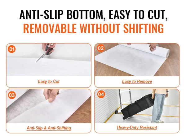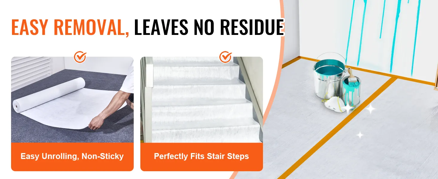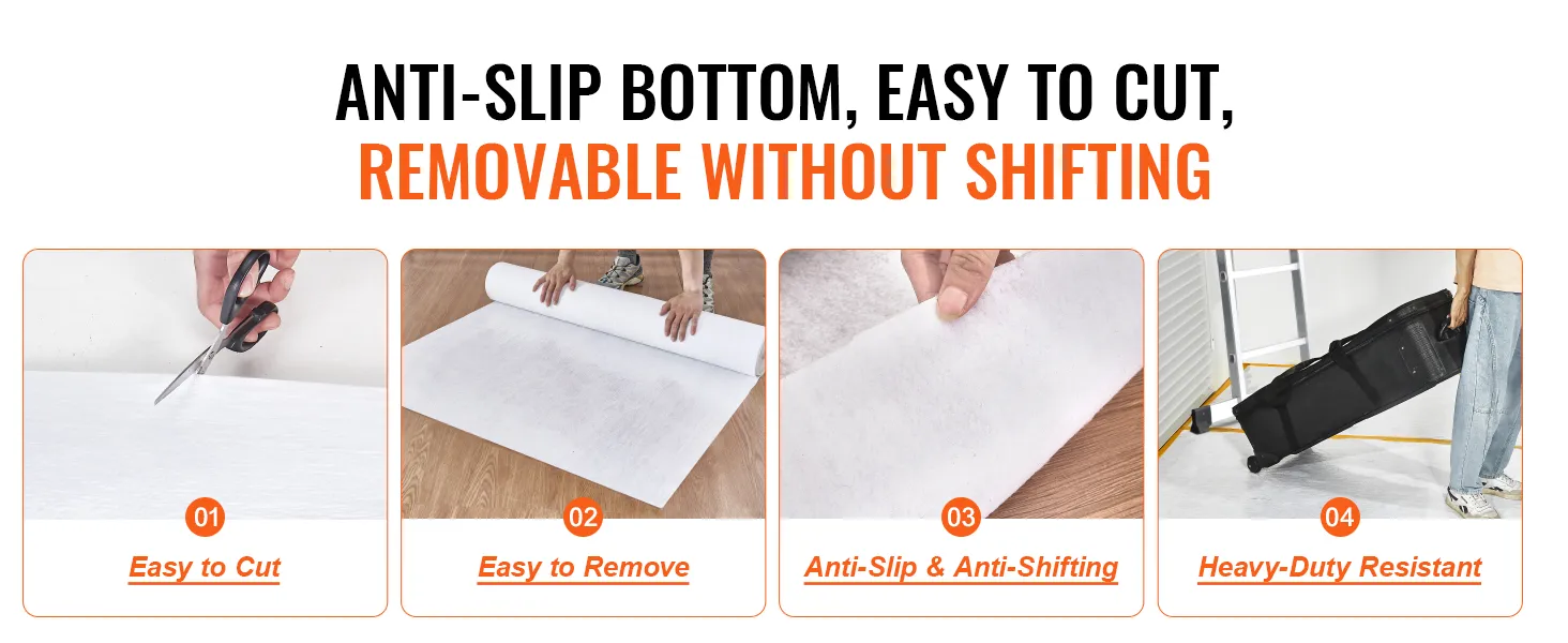 Daarom is de VEVOR renovatietapijtfolie een veelzijdige oplossing voor uiteenlopende toepassingen. Het maakt niet uit of u werkt aan binnenbouw, buitenbouwprojecten of dat u uw vloeren moet beschermen tijdens het verhuizen. Onze folie is bestand tegen de taak. Met zijn duurzaamheid en gebruiksgemak wordt hij beroemd onder professionals en huiseigenaren.