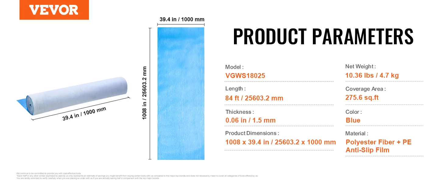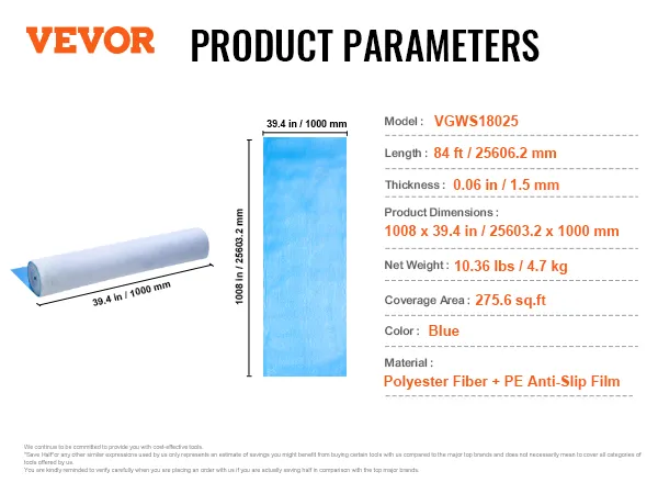 VEVOR Carpet Protection Film, 40" x 84' Floor and Surface Shield, Easy to Cut Simple Installation, Fiber Fabric Car Mat Protection Film Roll for Construction & Renovation,Blue