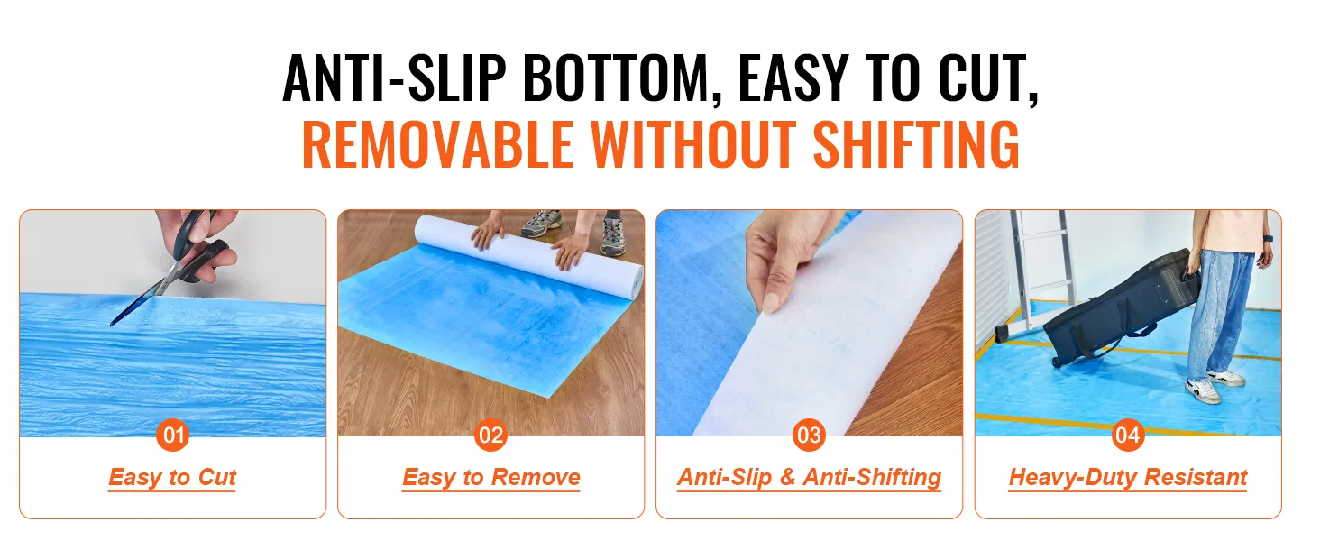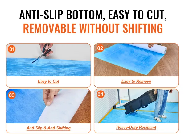 Versatile Use: This floor protector is suitable for various scenarios, such as indoor construction pollution, outdoor building projects, or protecting floors during a move to a new home.