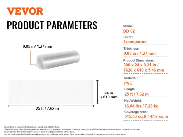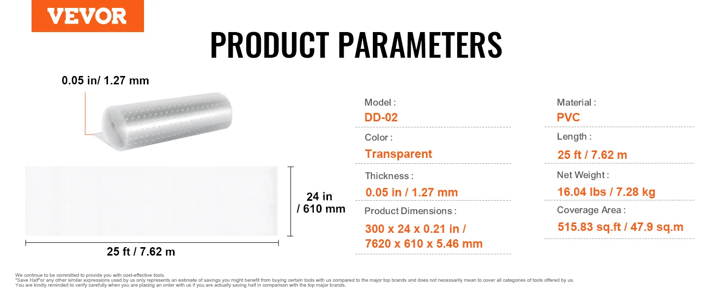 Waterproof and Wear-Resistant: Made from high-quality transparent vinyl material, this protector is waterproof, non-slip, wear-resistant, and odor-free, offering comprehensive protection. The vinyl material resists deformation and curling, with an HD40-45 high hardness rating, ensuring long-lasting durability.
