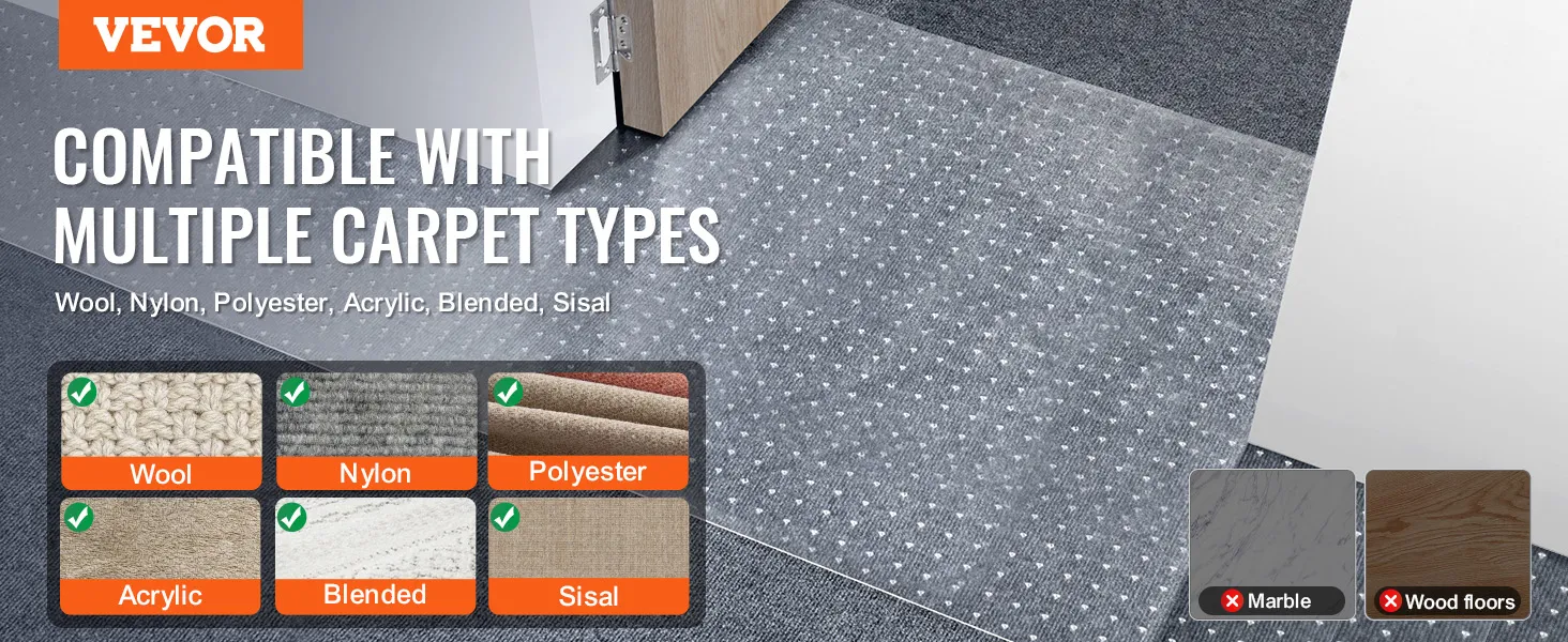 3D Textured Studs: The 3D textured studs offer strong grip, ensuring the carpet protector stays firmly in place without causing any damage to the carpet. This feature prevents the carpet protector from shifting during use, maintaining optimal protection for your carpet.