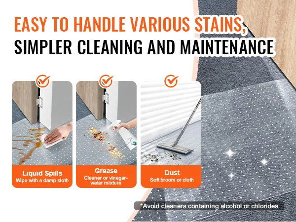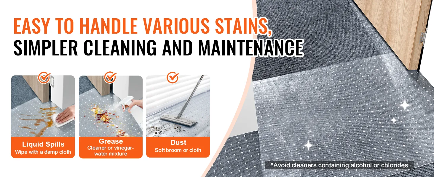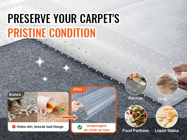 Easy to Clean: Suitable for areas like under coffee tables or door mats, this protector can be easily wiped clean with a cloth or damp mop. It is convenient and quick to maintain. Additionally, our carpet protector is reusable, allowing you to switch between different areas without needing a replacement.