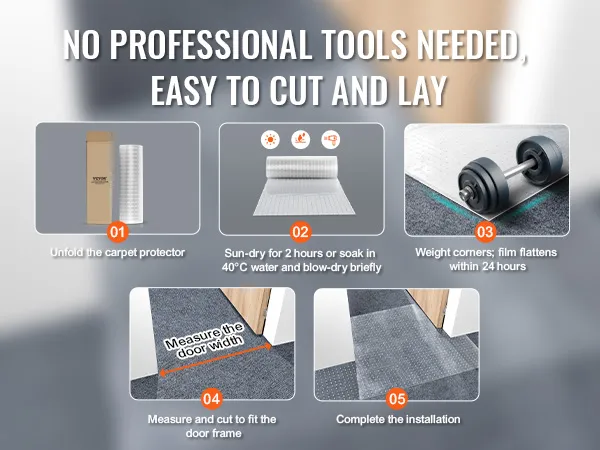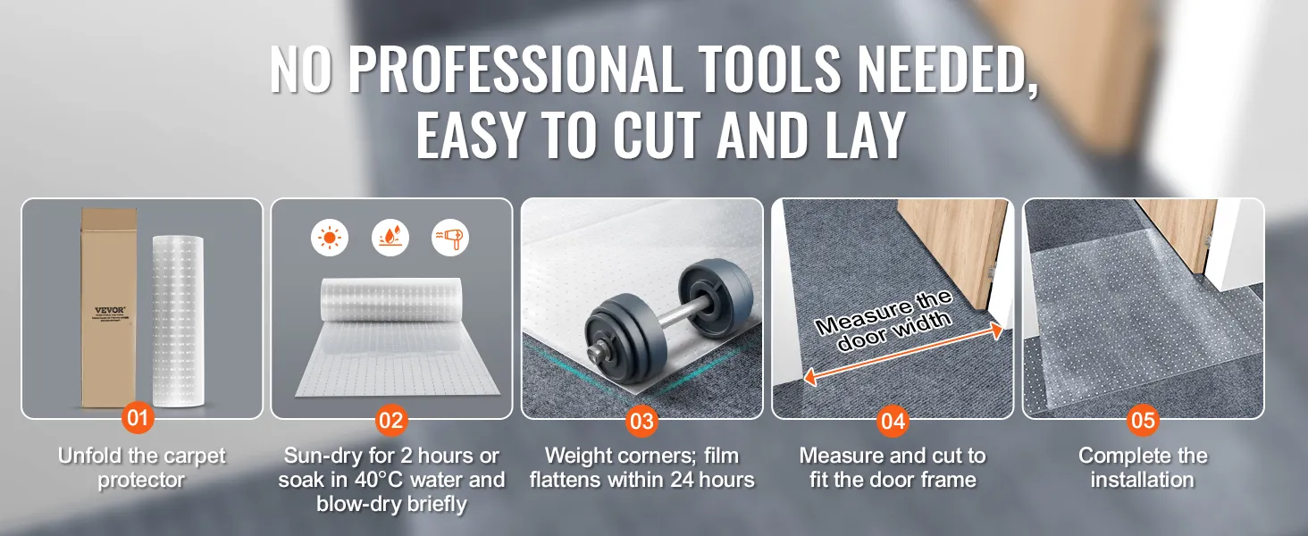 Easy Installation: Install in just three simple steps, making cutting and laying the protector easy and straightforward. You can easily trim the protector to fit door gaps and the shape of your carpet perfectly. The laying process is simple and intuitive, following the provided instructions.